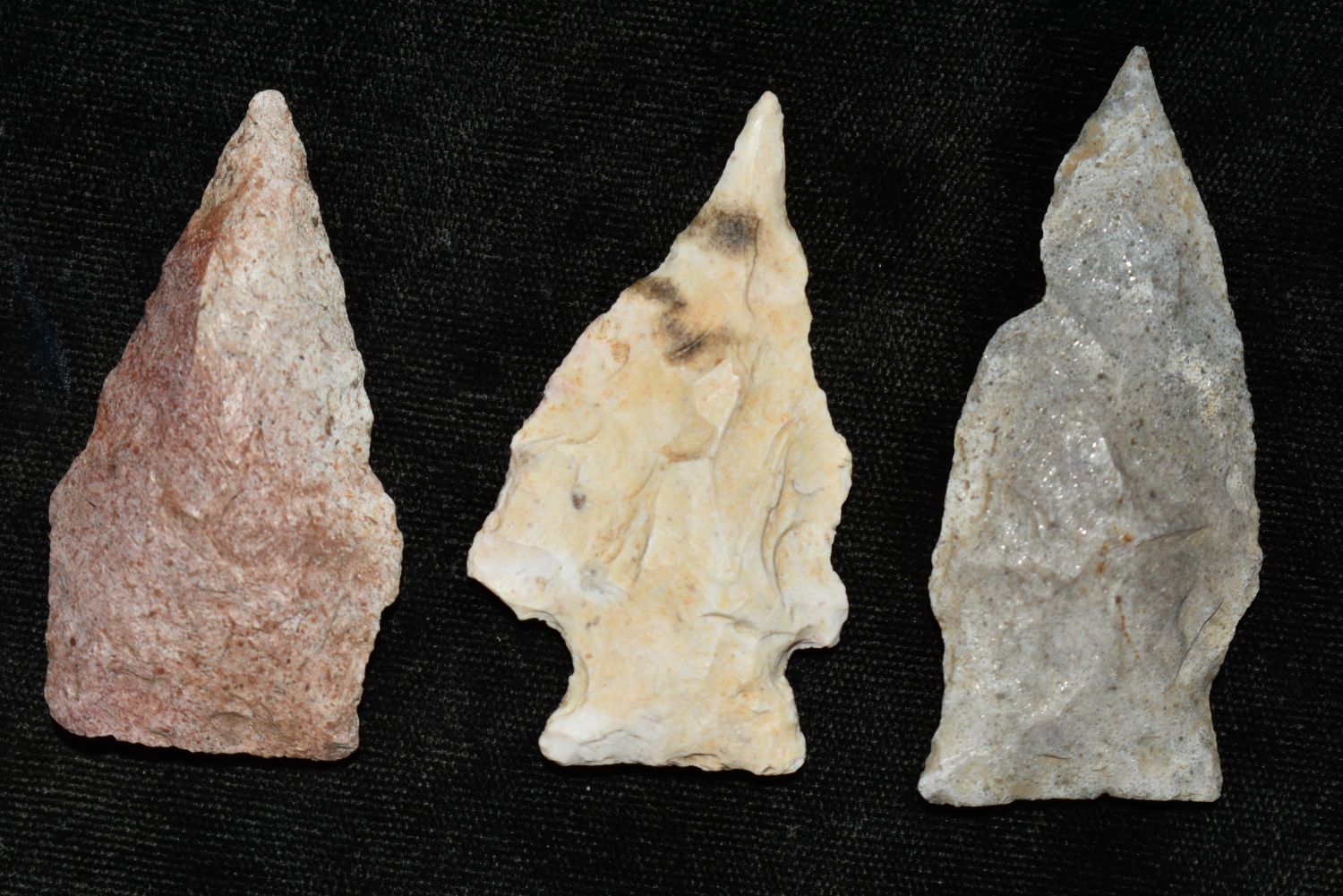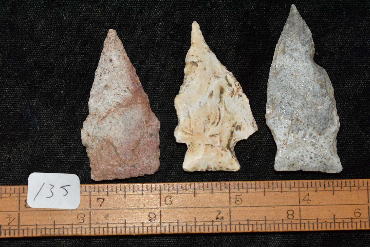 3 Arrowheads 1 1/8" to 2 1/2", ex Sam Webster Collection, Pettis Co., Mo Condition: 100% Guaranteed Authentic via our Return Policy & Found on Private Property