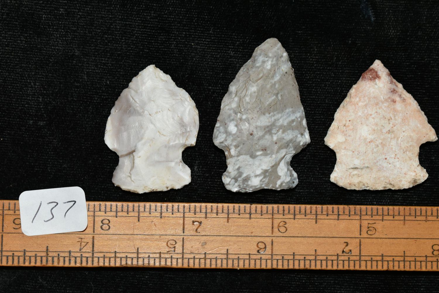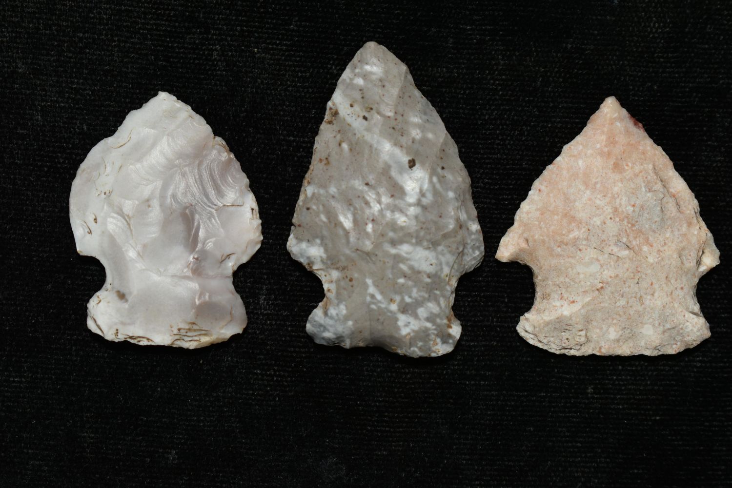 3 Arrowheads 1 1/2" to 2 3/4", ex Sam Webster Collection, Pettis Co., Mo Condition: 100% Guaranteed Authentic via our Return Policy & Found on Private Property