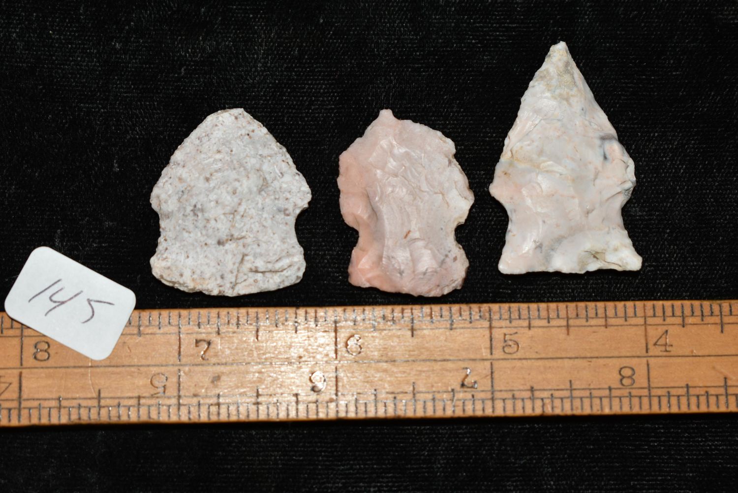 3 Arrowheads 1 1/8" to 1 1/2", ex Sam Webster Collection, Pettis Co., Mo Condition: 100% Guaranteed Authentic via our Return Policy & Found on Private Property