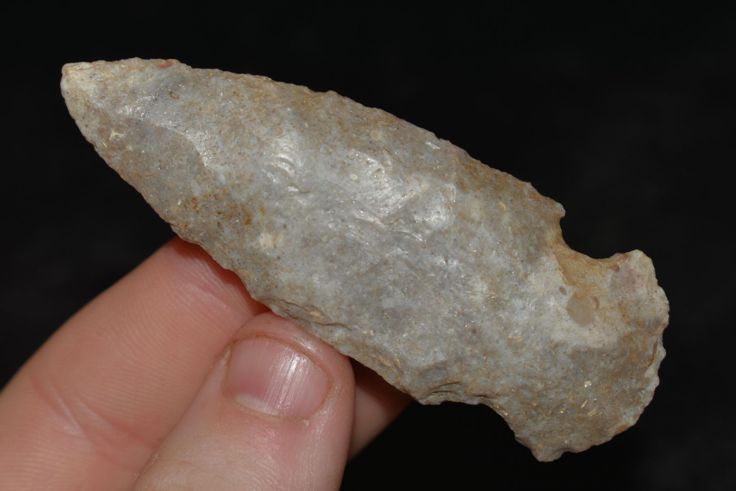 3" Hopewell Arrowhead made of Silver Olithic Mozarkite, ex Sam Webster Collection, Pettis Co., Mo