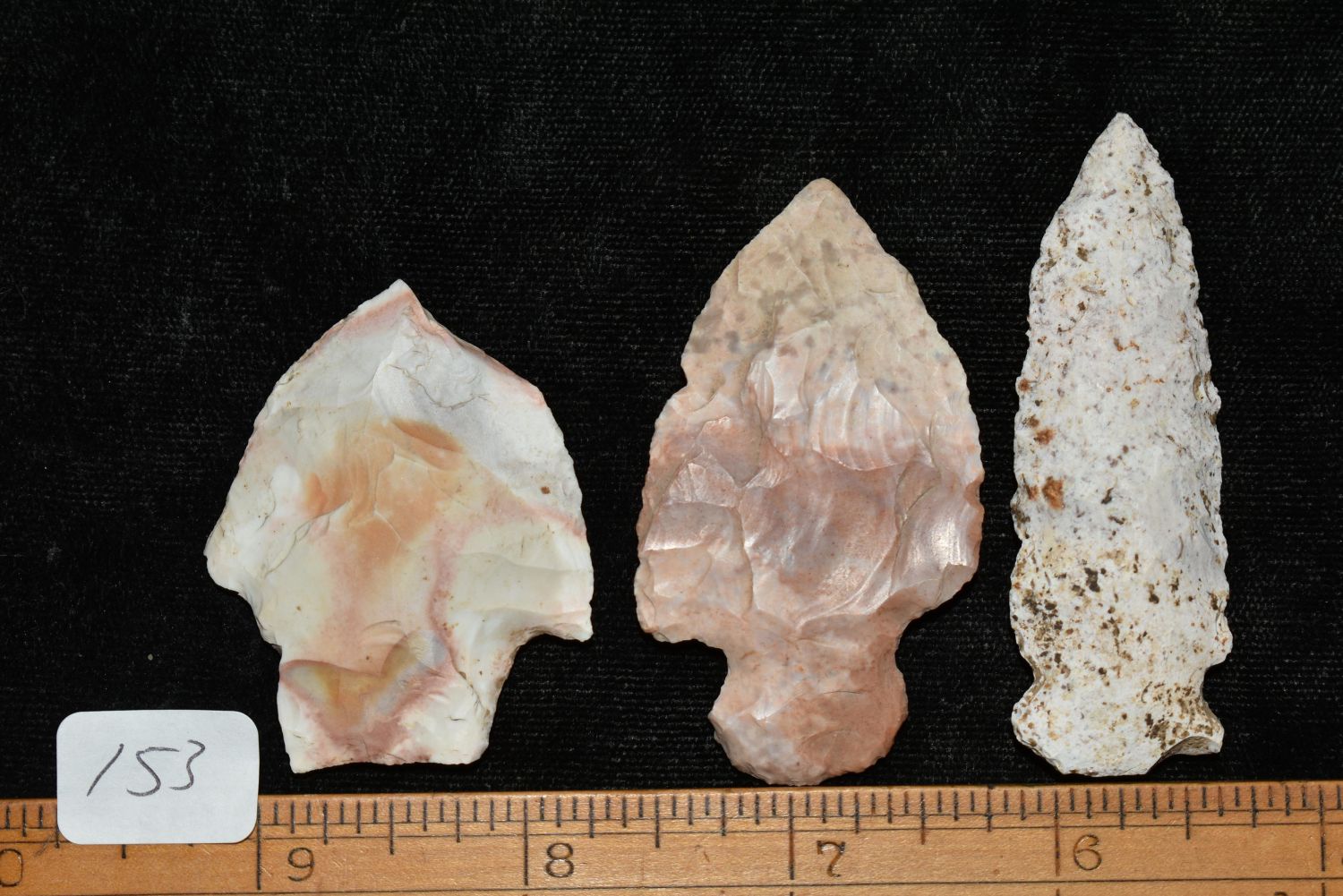 3 Arrowheads 1 7/8" to 2 1/2", ex Sam Webster Collection, Pettis Co., Mo Condition: 100% Guaranteed Authentic via our Return Policy & Found on Private Property