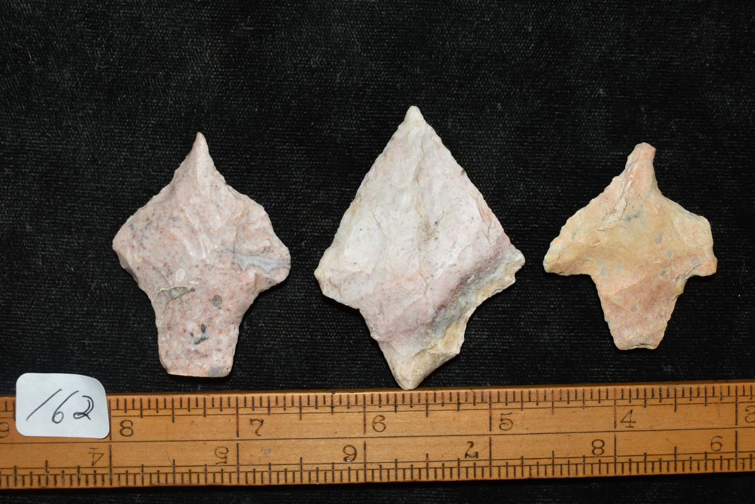 3 Arrowheads 1 5/8" to 2 1/4", ex Sam Webster Collection, Pettis Co., Mo Condition: 100% Guaranteed Authentic via our Return Policy & Found on Private Property