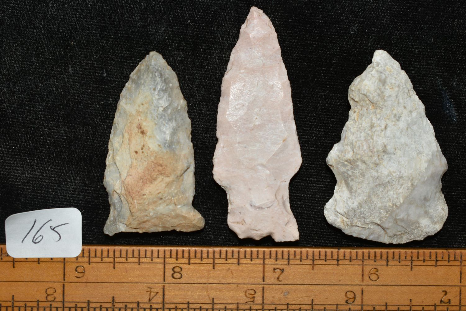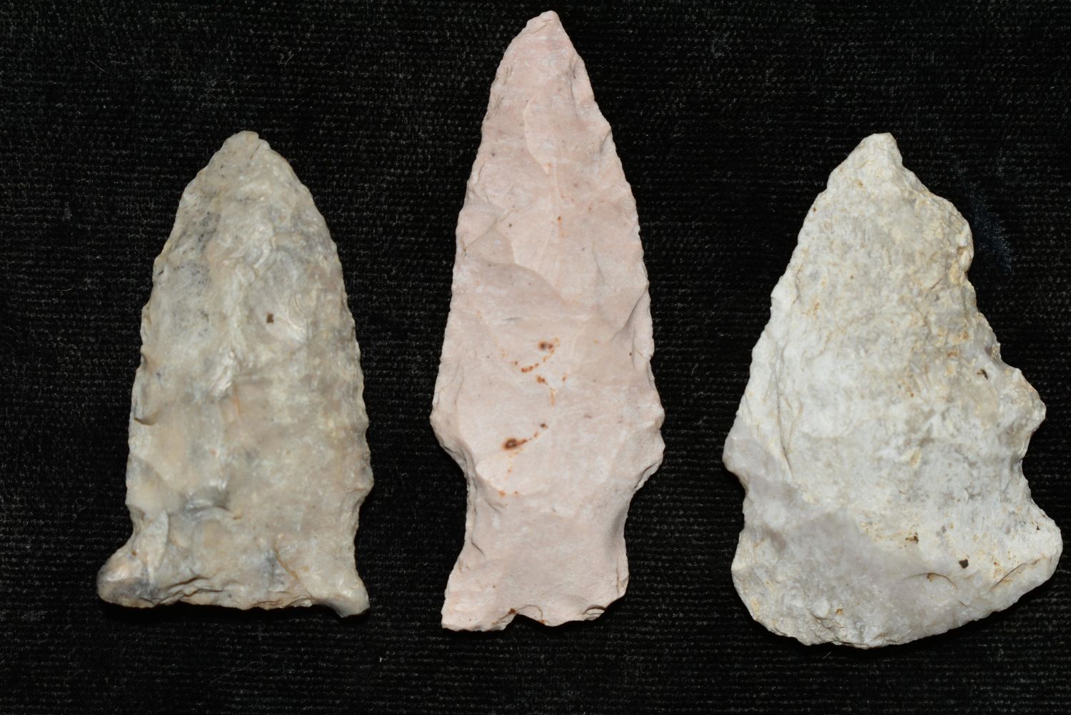 3 Arrowheads 1 7/8" to 2 3/8", ex Sam Webster Collection, Pettis Co., Mo Condition: 100% Guaranteed Authentic via our Return Policy & Found on Private Property