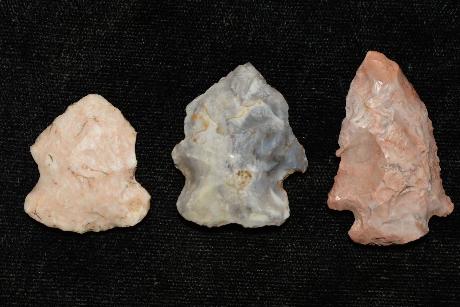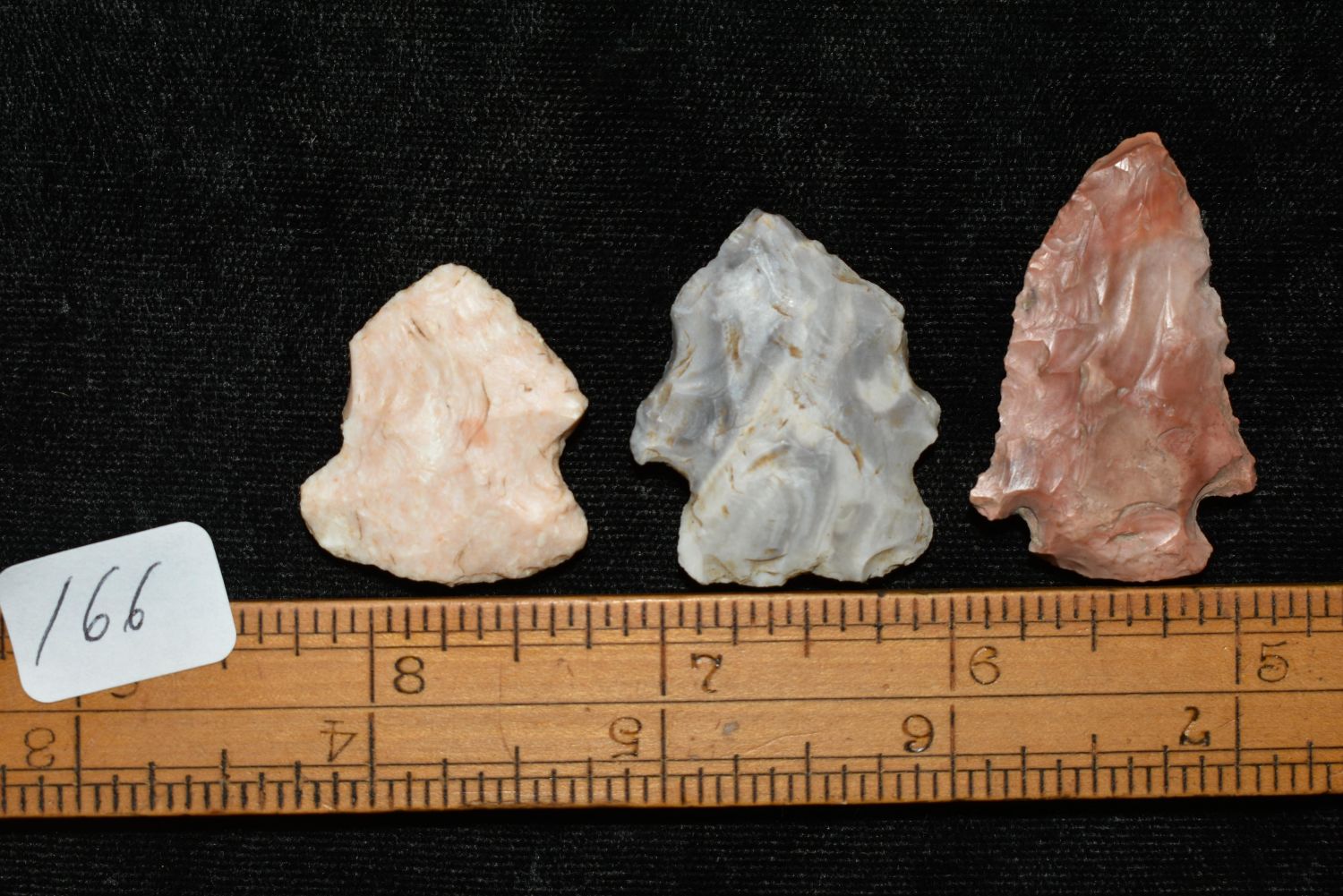 3 Arrowheads 1 1/8" to 1 1/2", ex Sam Webster Collection, Pettis Co., Mo Condition: 100% Guaranteed Authentic via our Return Policy & Found on Private Property