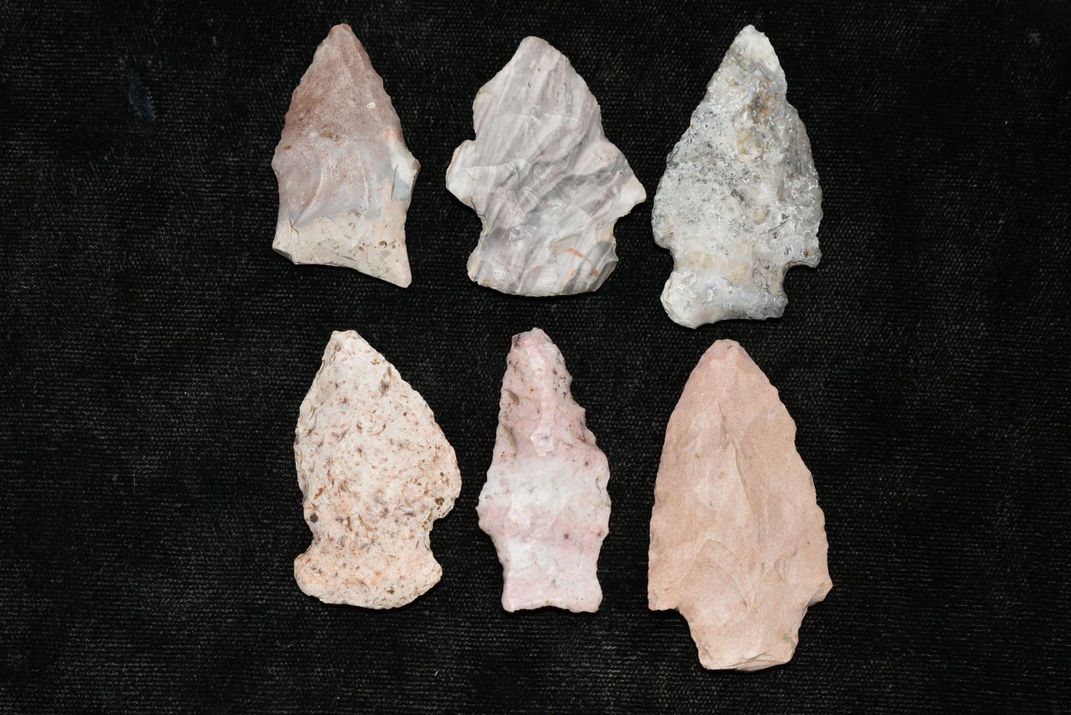 6 Arrowheads 1 5/8" to 2", ex Sam Webster Collection, Pettis Co., Mo Condition: 100% Guaranteed Authentic via our Return Policy & Found on Private Property