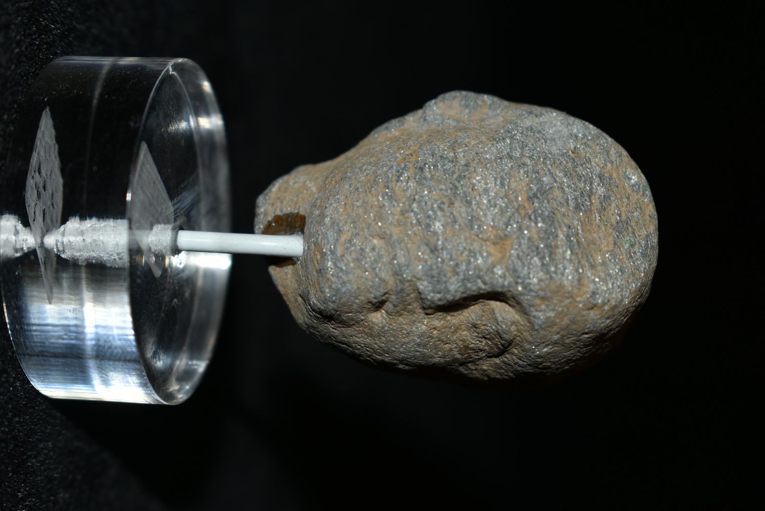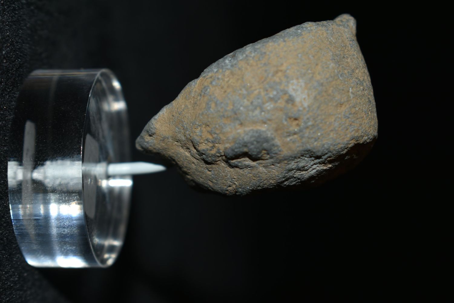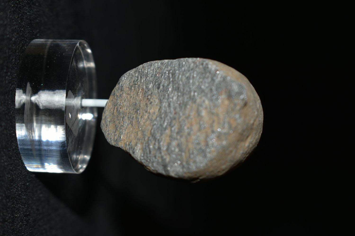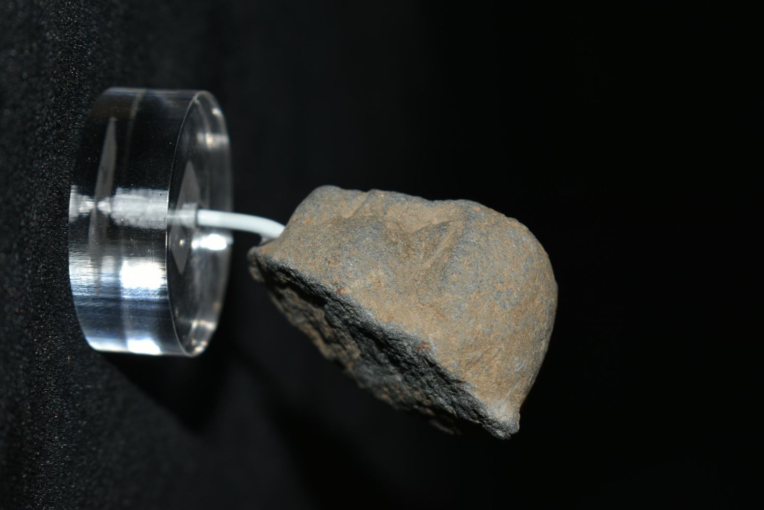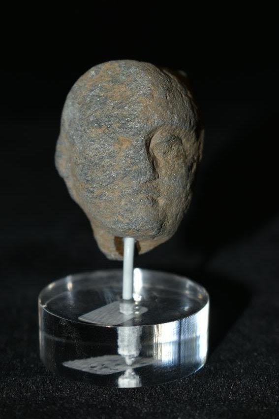 A lovely Gandharan stone head from the Indus Valley, ca. 3rd – 4th Century AD. It is 1-3/8” high, is carved from the blue-gray schist characteristic of the region and is mounted on base.