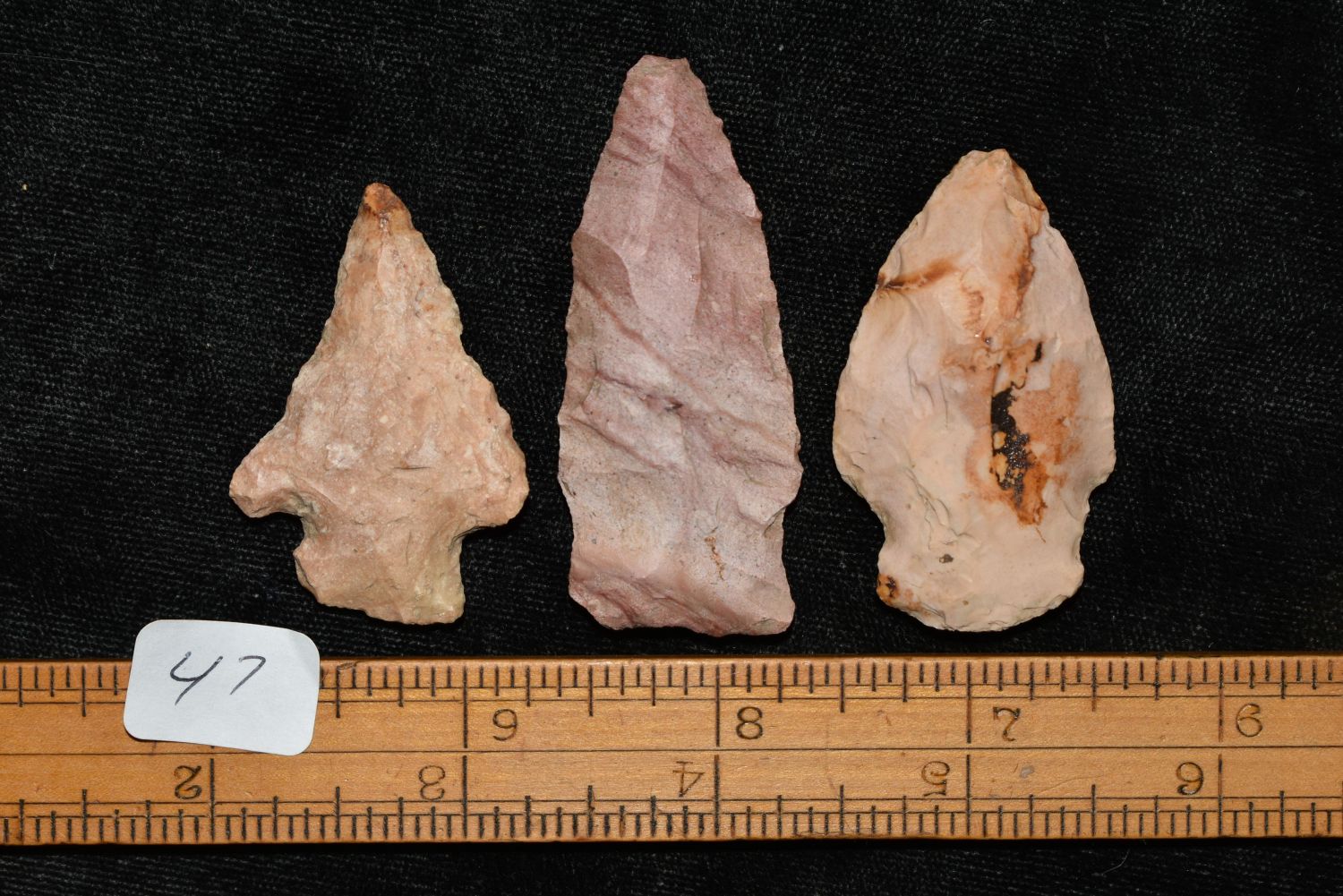 3 Common Arrowheads, 1 3/4 to 2 1/4", ex Sam Webster Collection, Pettis Co., Mo Condition: 100% Guaranteed Authentic via our Return Policy & Found on Private Property