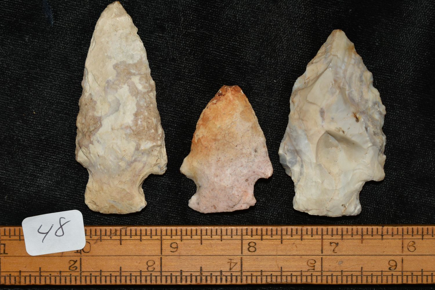 3 Common Arrowheads, 1 1/2 to 2 1/2", ex Sam Webster Collection, Pettis Co., Mo Condition: 100% Guaranteed Authentic via our Return Policy & Found on Private Property