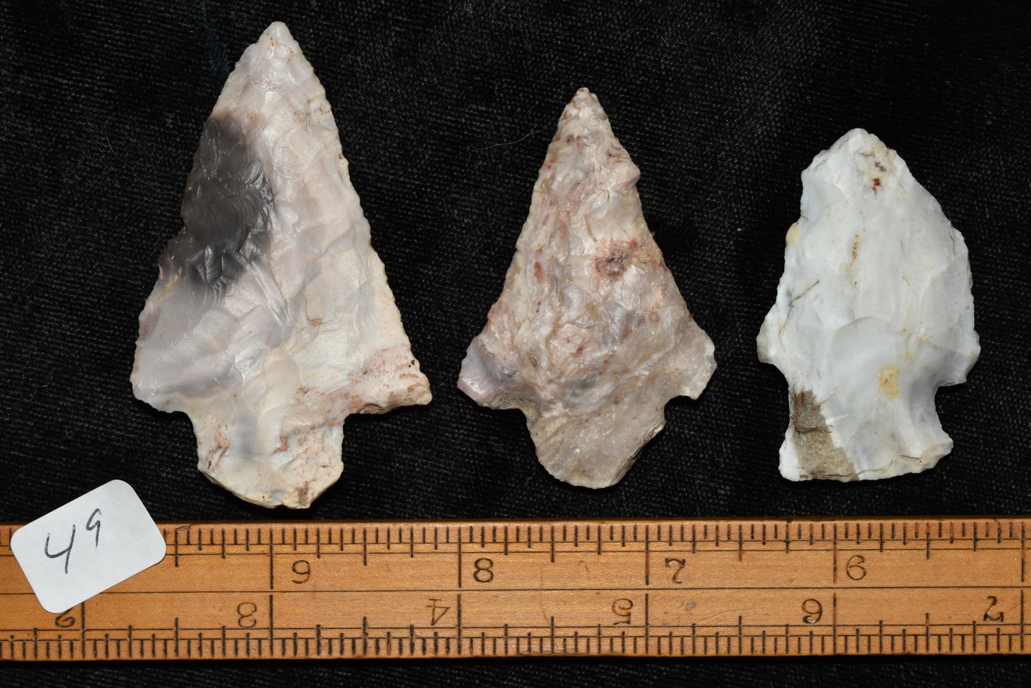 3 Common Arrowheads, 1 3/4 to 2 1/2", ex Sam Webster Collection, Pettis Co., Mo Condition: 100% Guaranteed Authentic via our Return Policy & Found on Private Property