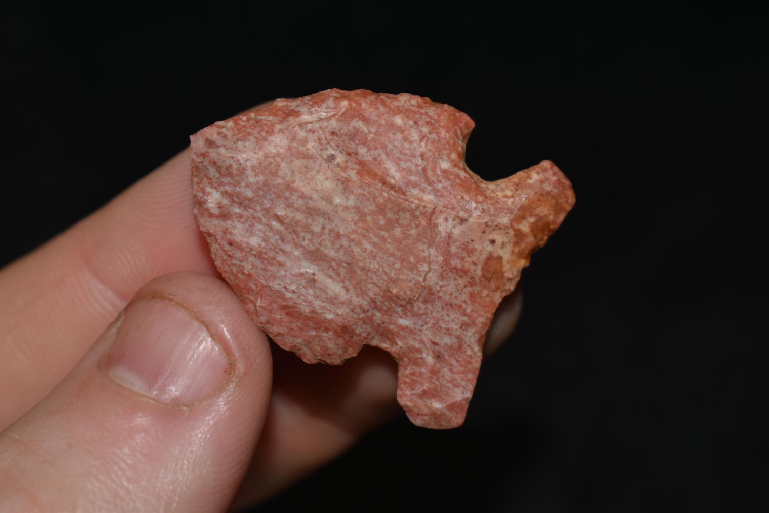1 1/4" Colorful Woodland Arrowhead, ex Sam Webster