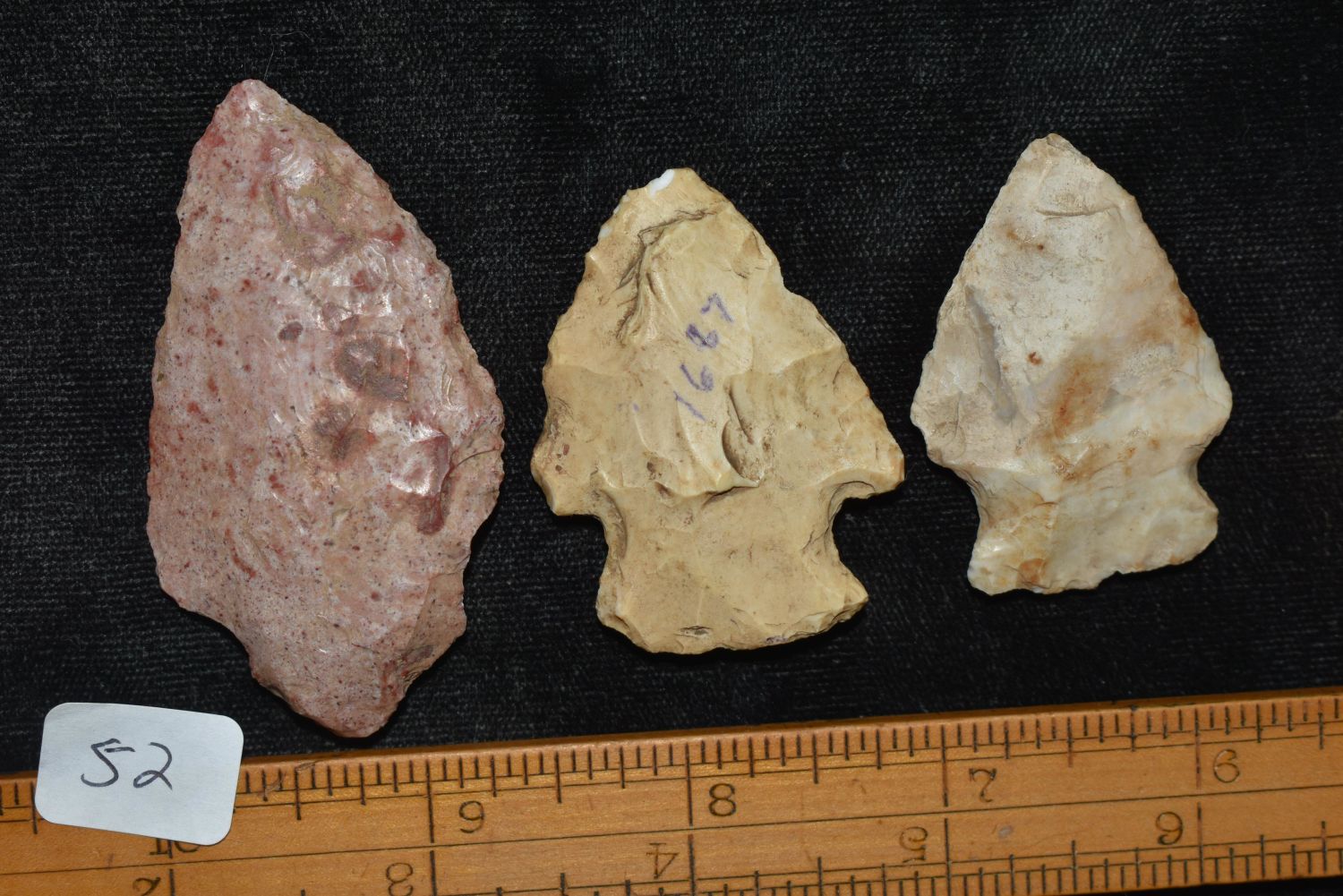 3 Common Arrowheads, 1 1/2 to 2 1/2", ex Sam Webster Collection, Pettis Co., Mo Condition: 100% Guaranteed Authentic via our Return Policy & Found on Private Property
