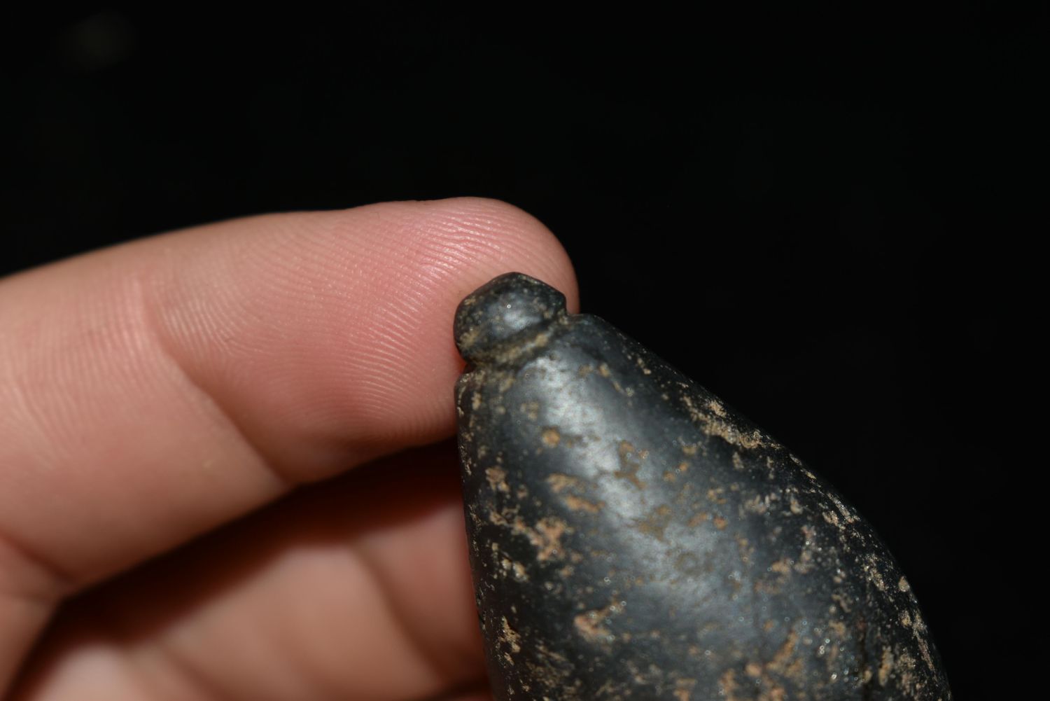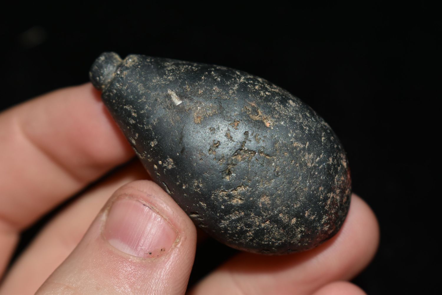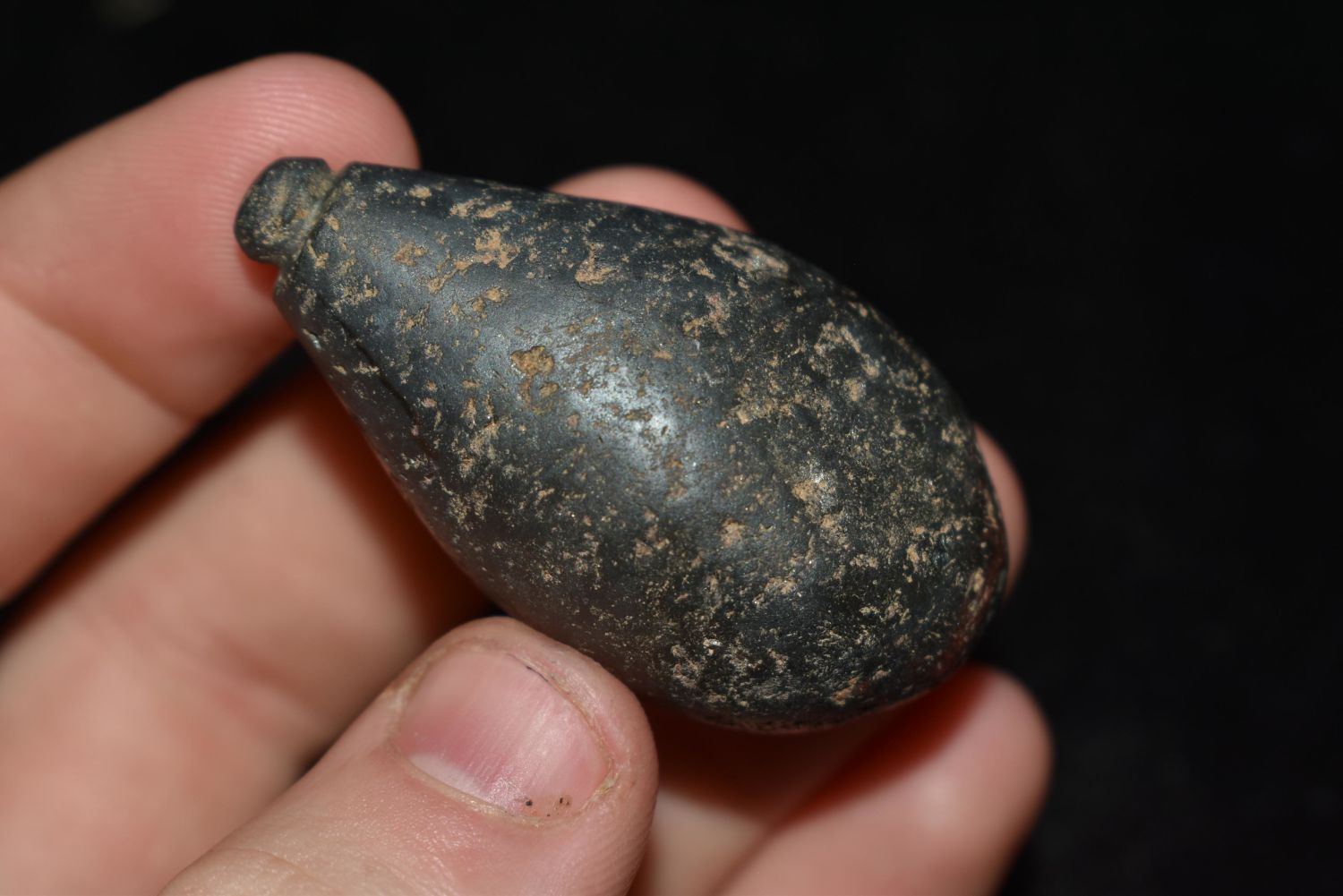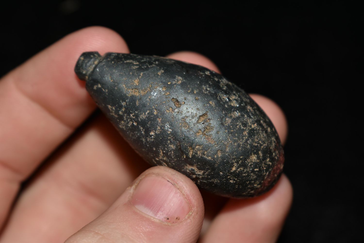 1 7/8" Hematite Plummet with unique red ring, Missouri Authentic Native American Artifact