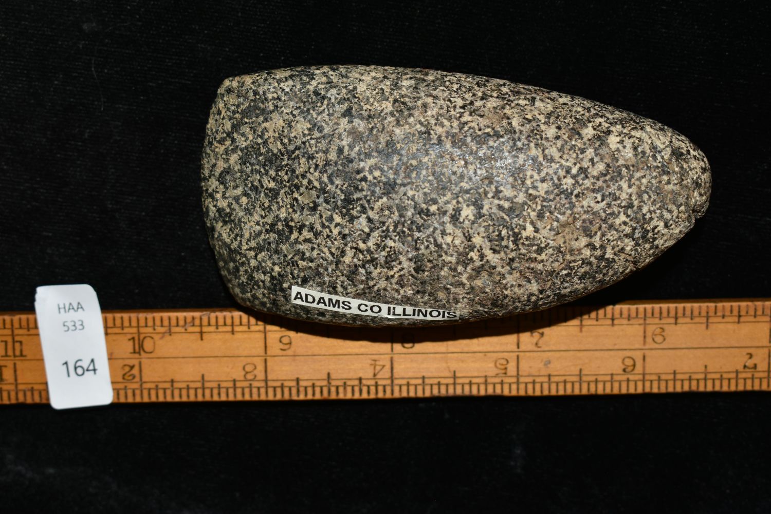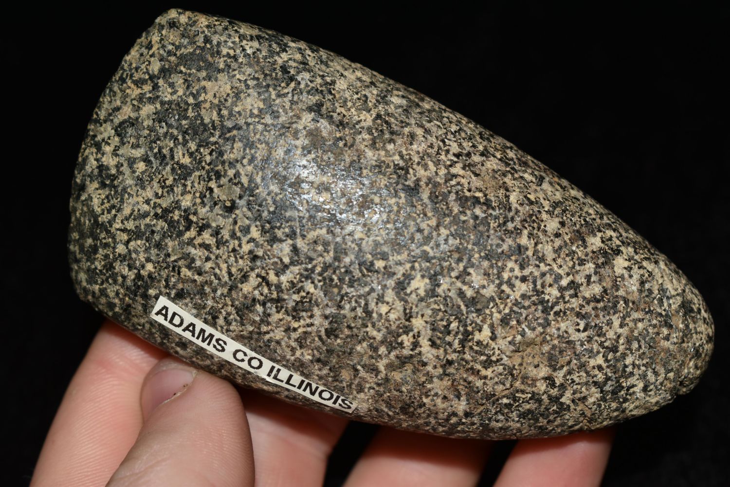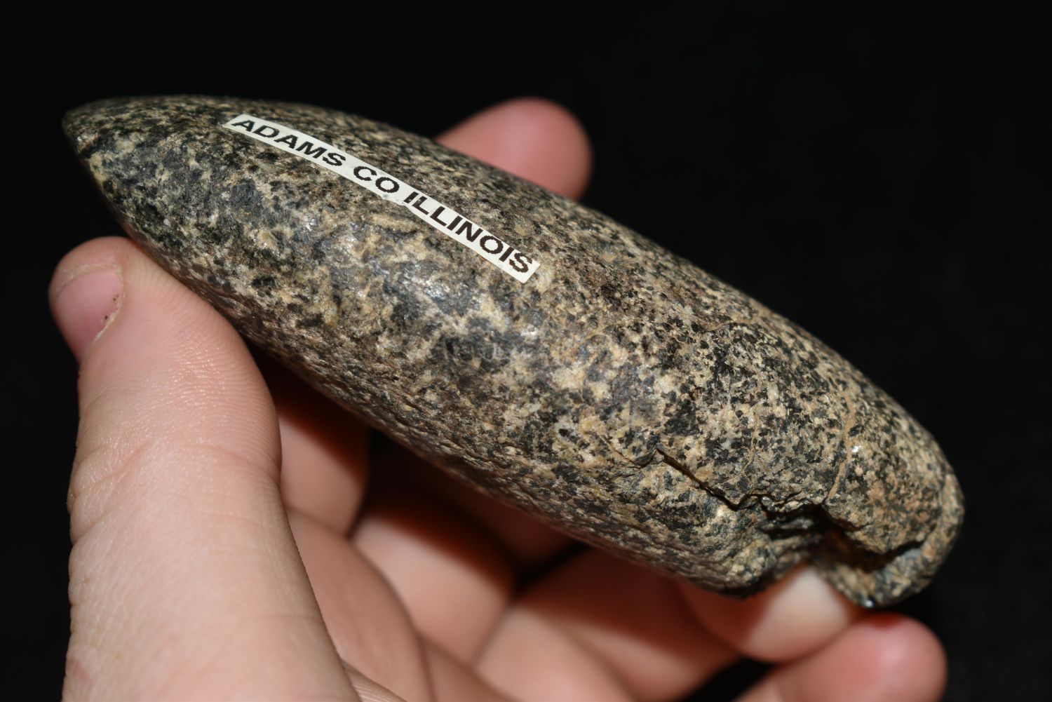 3 3/4" Colorful Celt, Adams Co., Illinios, Ex. Clark, Broken and Reglued Authentic Native American Artifact