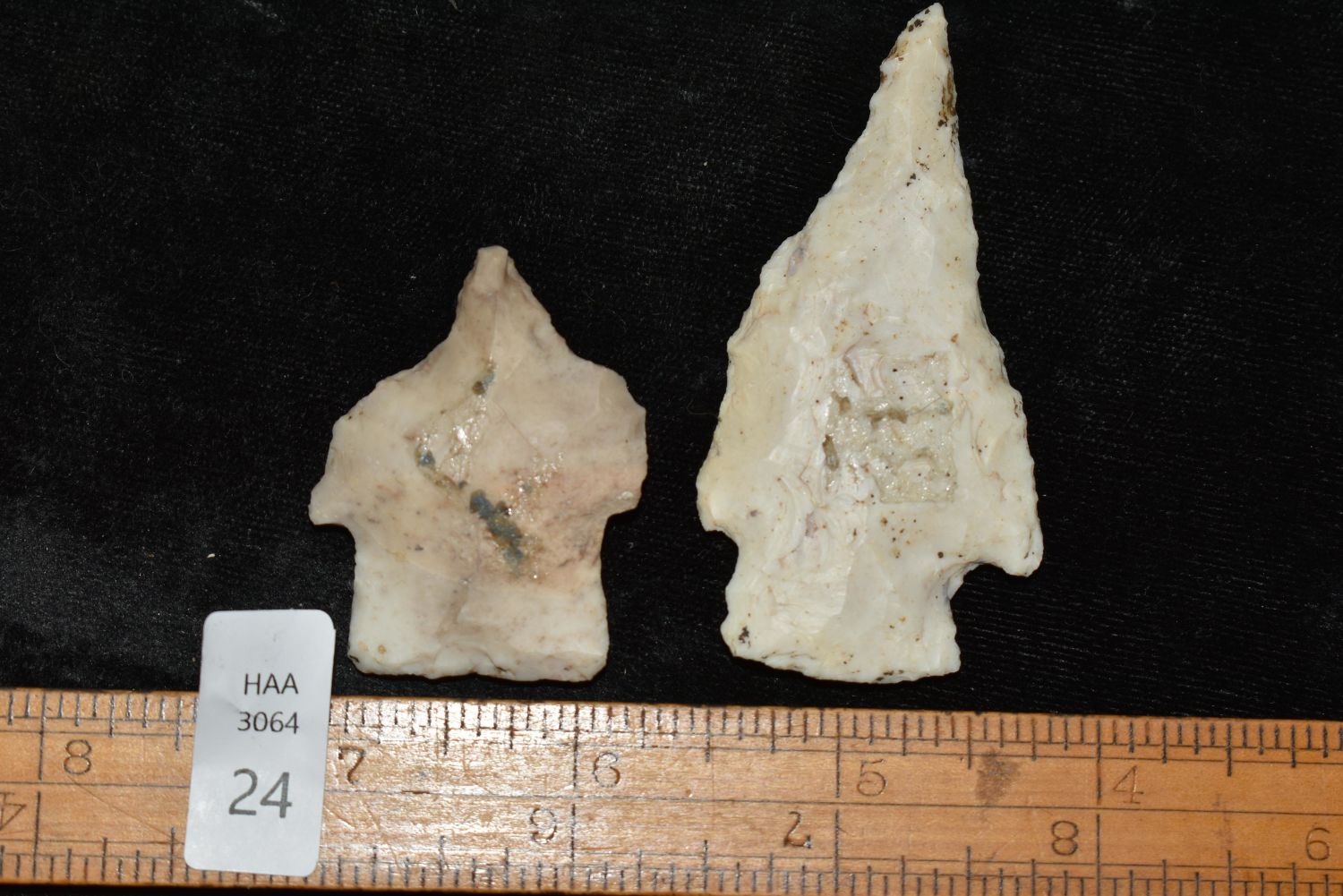 Lot of 2 Woodland Drills, Largest measures 2 3/4" Found by Dan Simmons in Lincoln Co., Missouri in the 90’s Authentic Native American Artifact