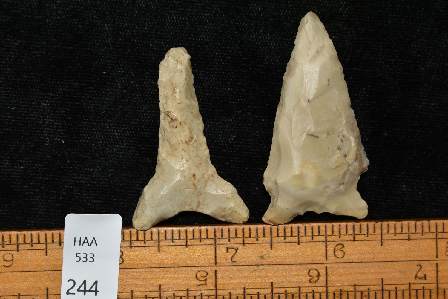 Lot of 2 Archaic Point with Great Patination found by Dan Simmons in Lincoln Co., Missouri in the 90’s Authentic Native American Artifact