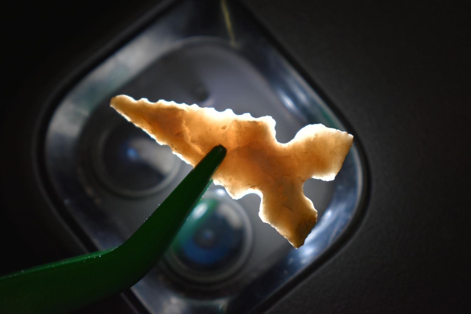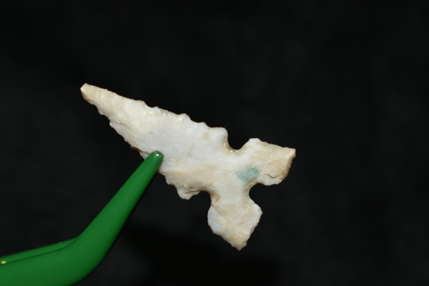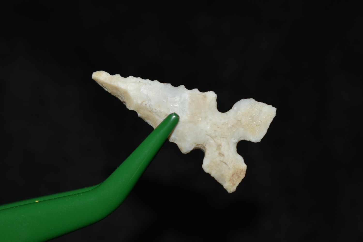 1 1/8" Cahokia Tri-Notch purchased from John Miller approx. 1968. Bought at a farm sale at Cahokia Mounds. Ex. Mitch Lewis Authentic Native American Artifact Arrowheads