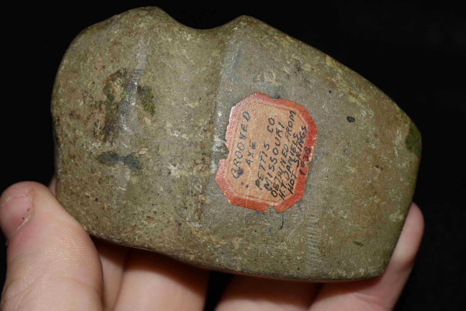 3 1/8" 3/4 Groove Toy Axe found in Pettis Co., Missouri, Obtained from H.T. Daniels Hot Springs 1938 Ex. Hipskind Authentic Native American Artifact Arrowheads