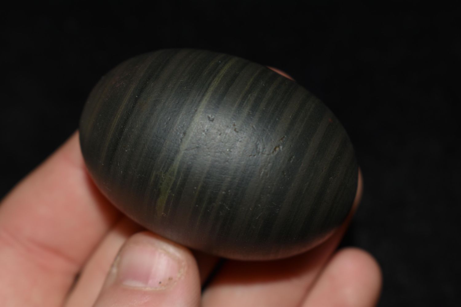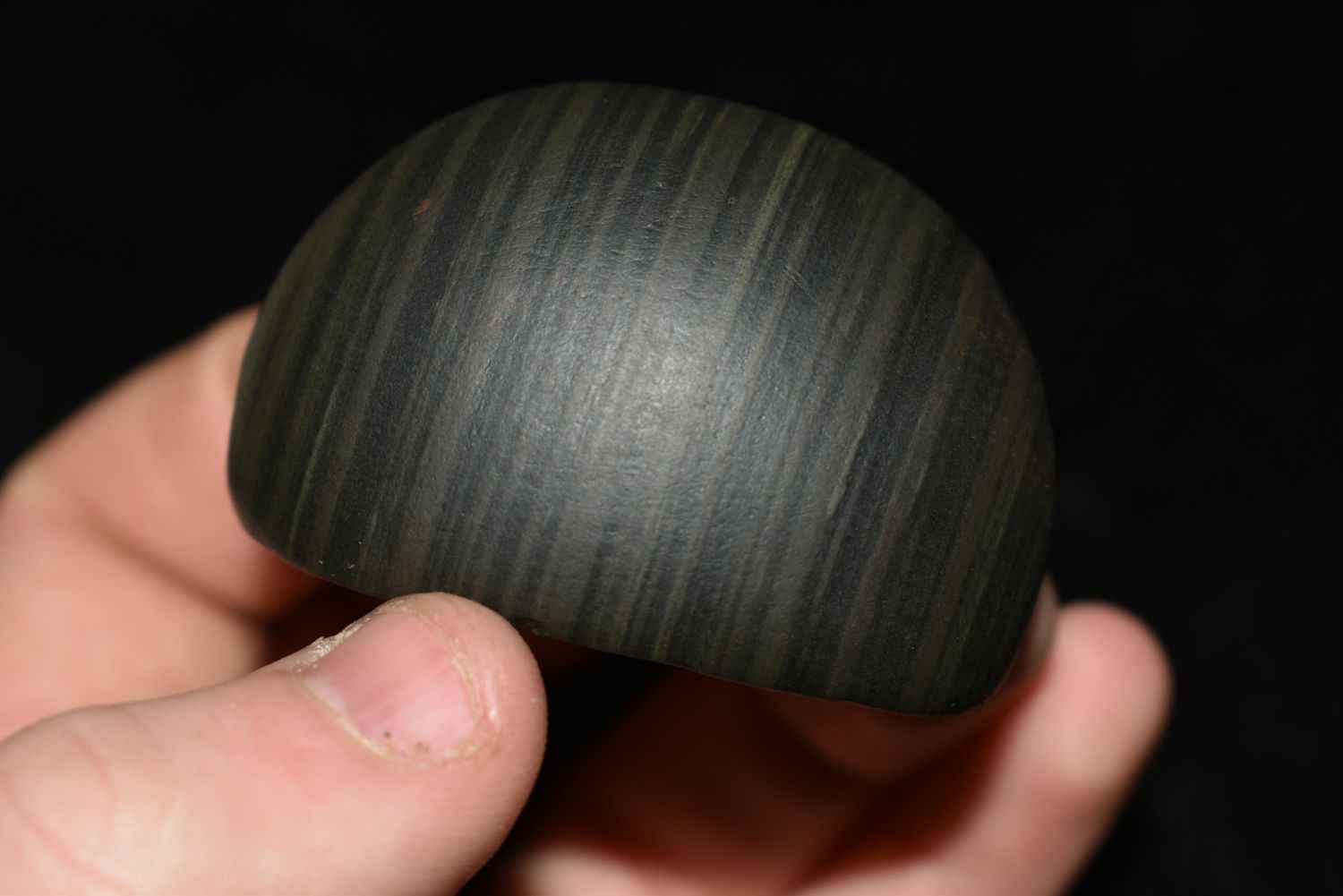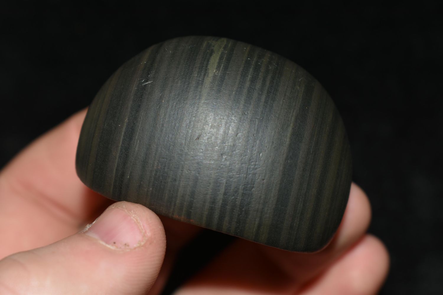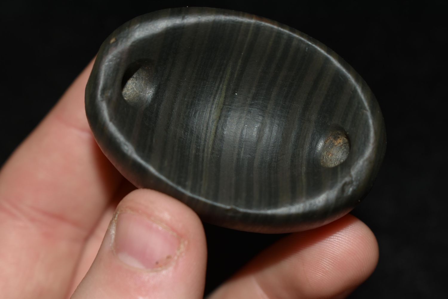 2" Banded Slate Cupped Boatstone, Illinois, Ex. Mitch Lewis Authentic Native American Artifact Arrowheads