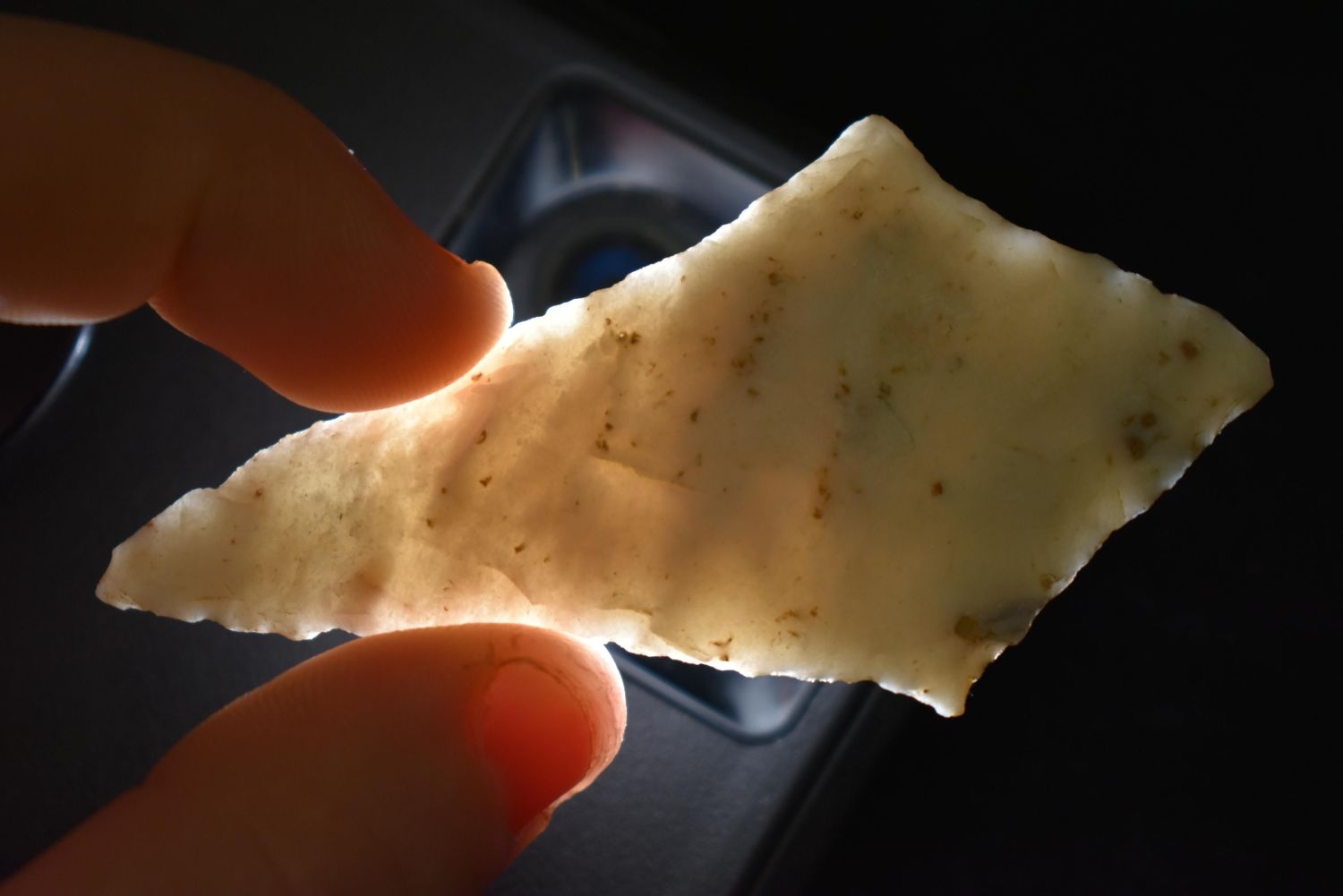 3" Highly Translucent Piesker Diamond, found by Mike Livingston in Brown Co., Illinois Authentic Native American Artifact Arrowheads