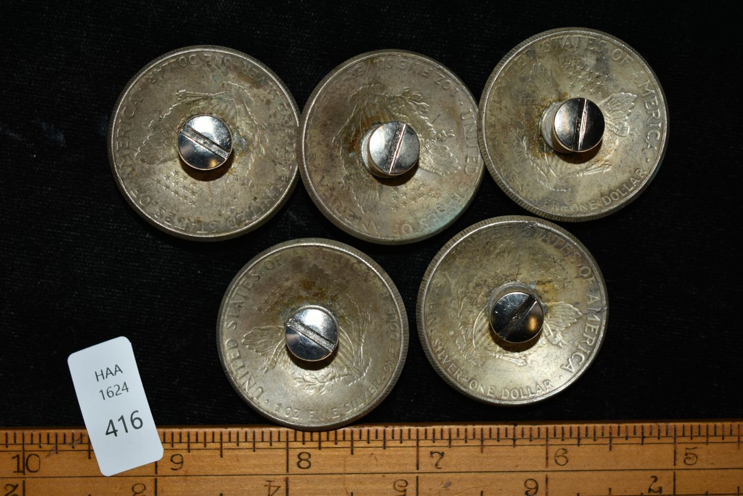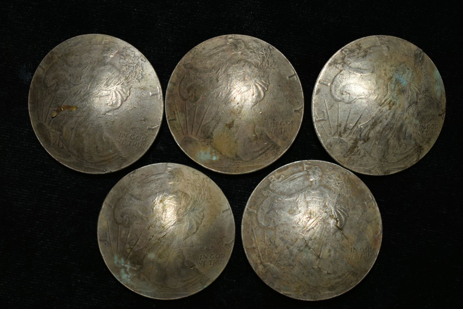 Five silver conchos with Walking Liberty Condition: 100% Guaranteed Authentic via our Return Policy & Found on Private Property