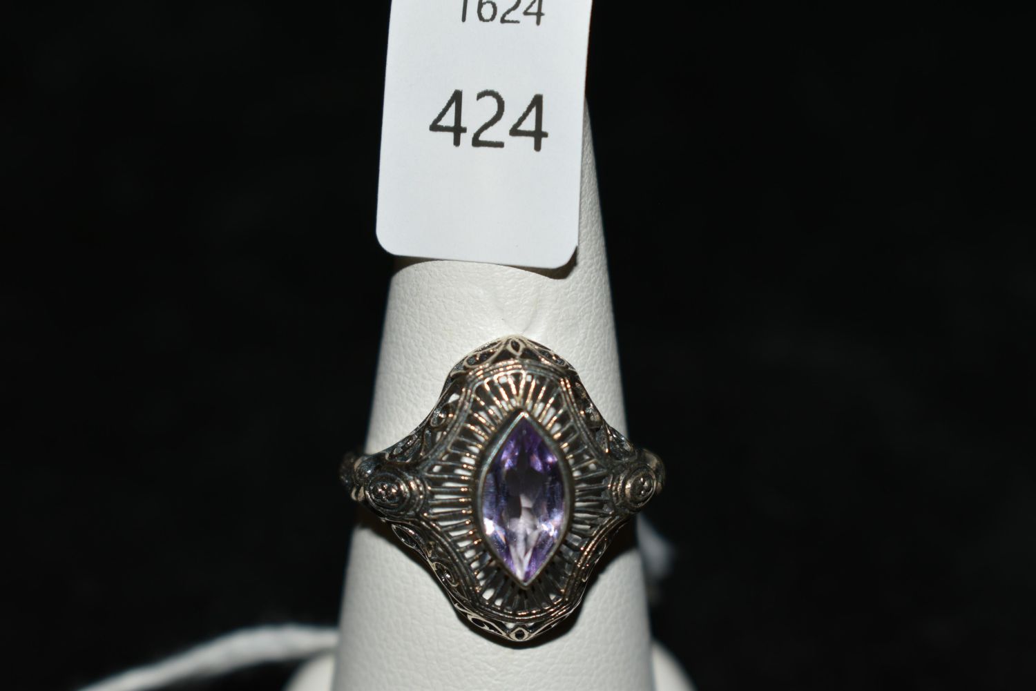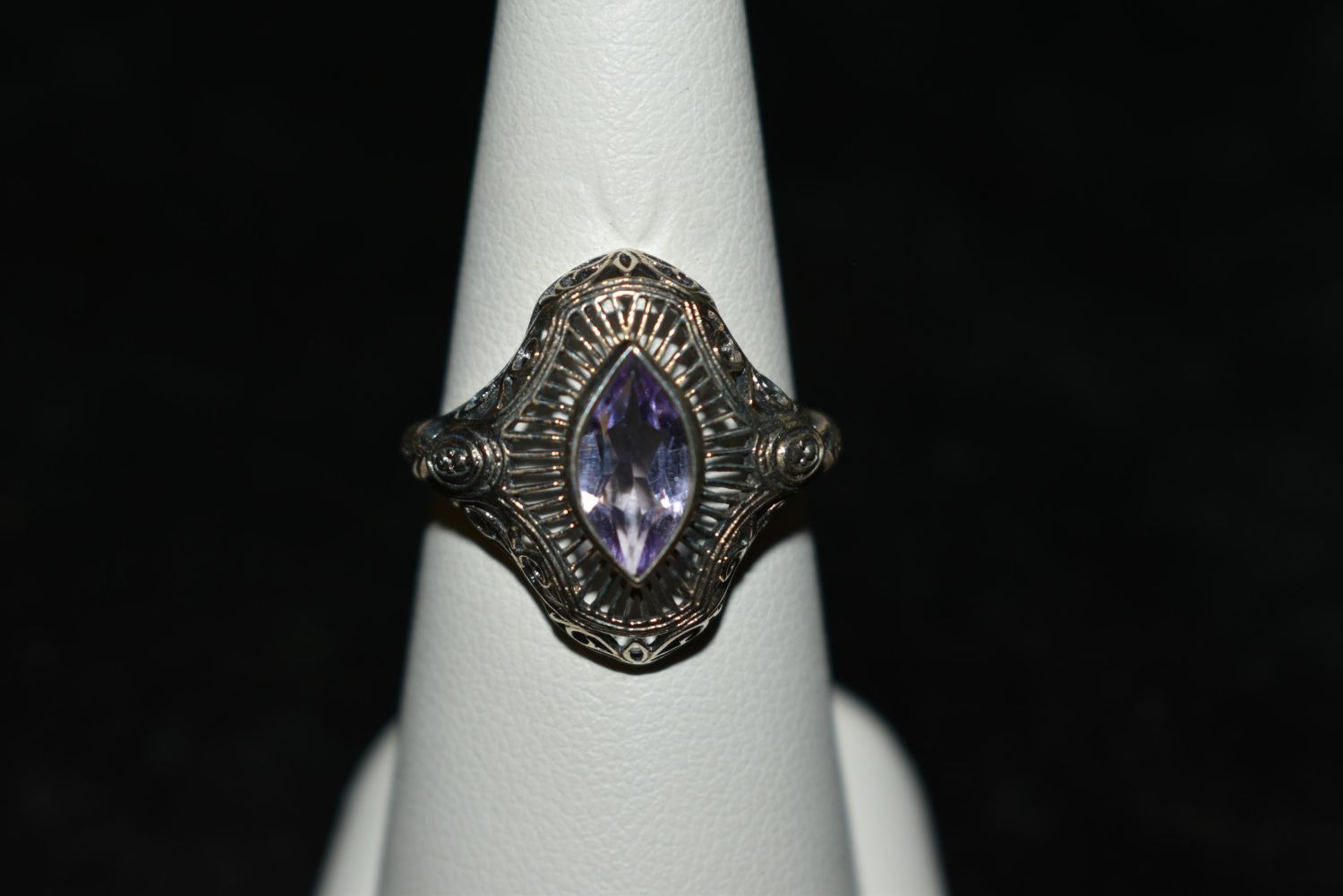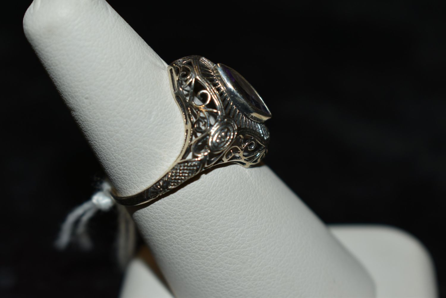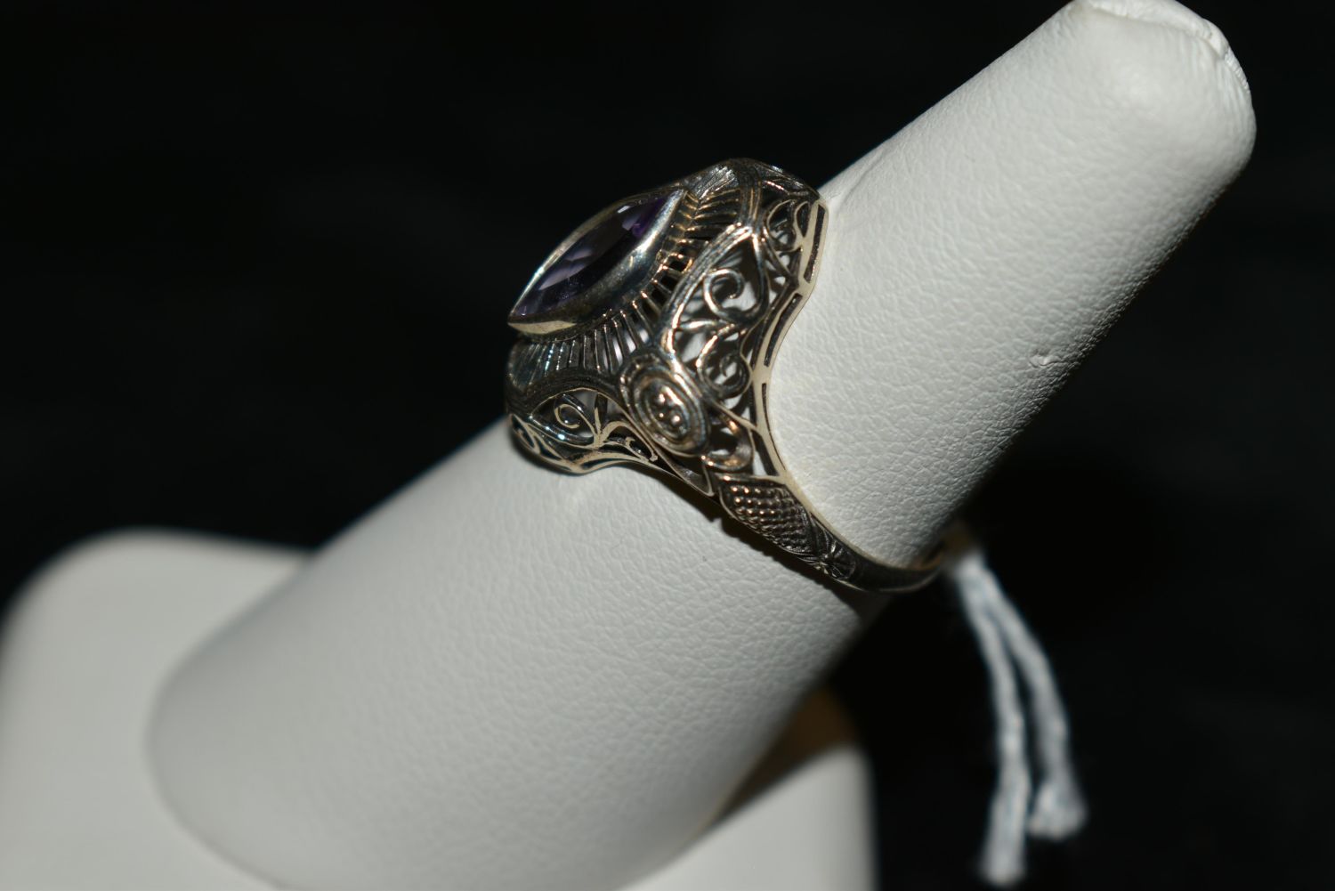 Fancy filigree .925 sterling silver ring amethyst Size 6 3/4. Condition: 100% Guaranteed Authentic via our Return Policy & Found on Private Property