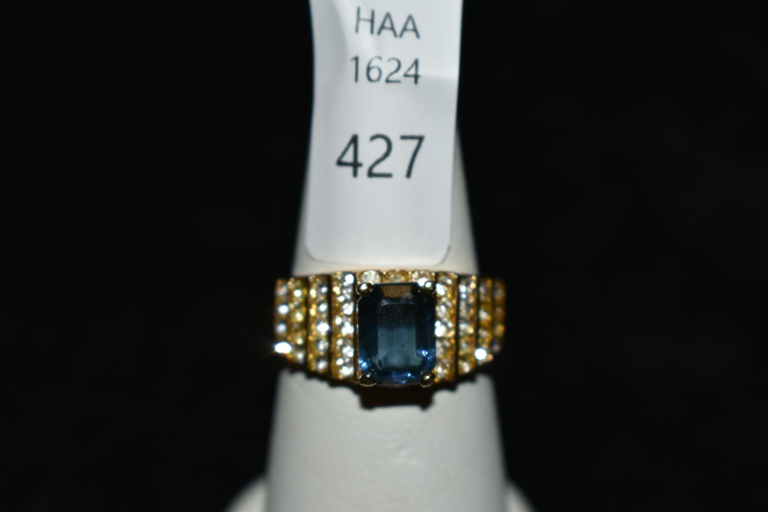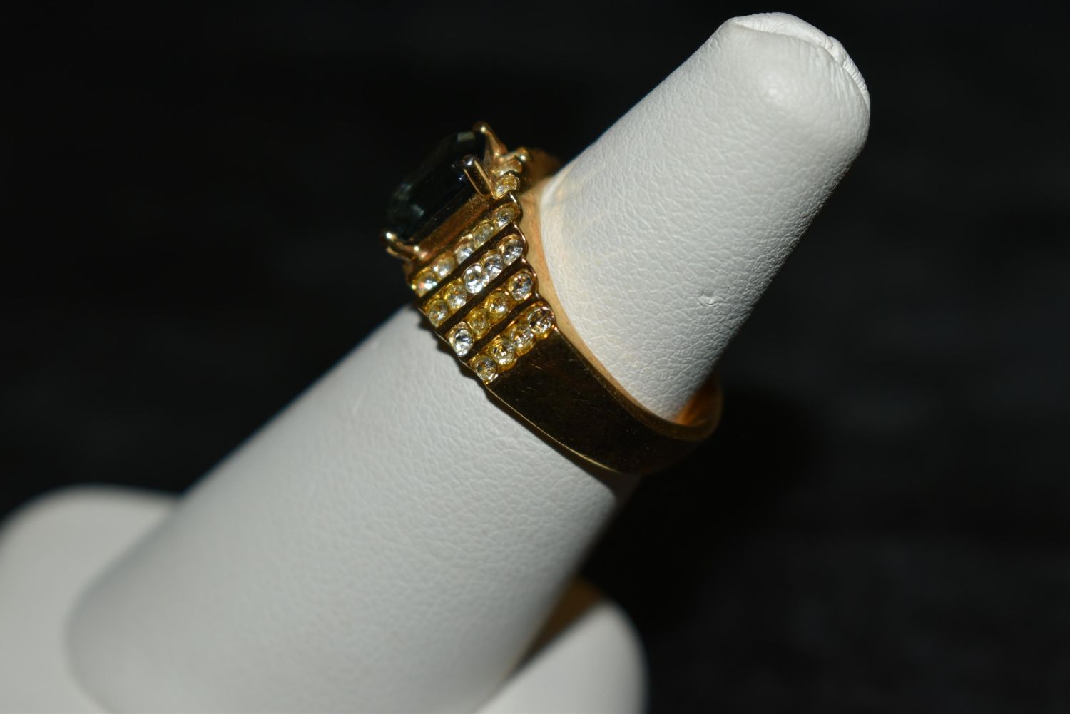 Beautiful Blue and white topaz 10k gold electroplated ring. Size 6 Condition: 100% Guaranteed Authentic via our Return Policy & Found on Private Property