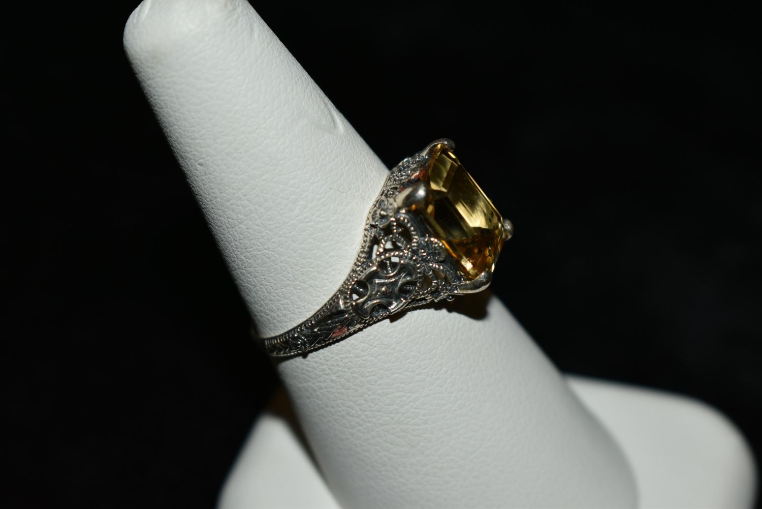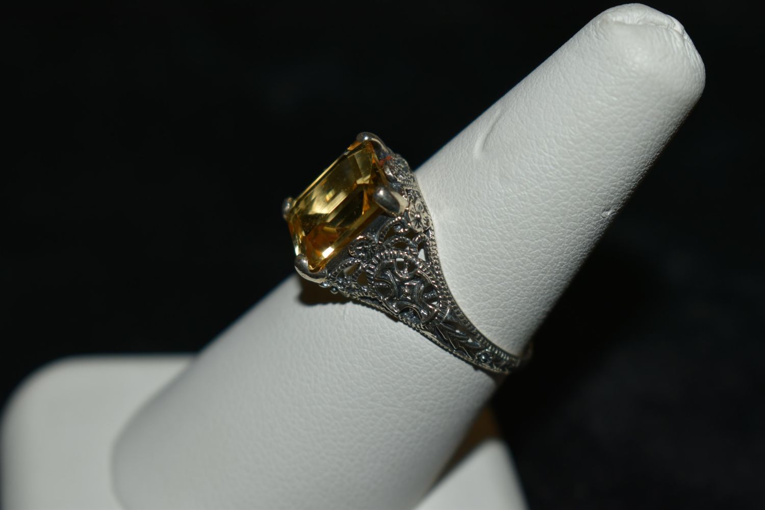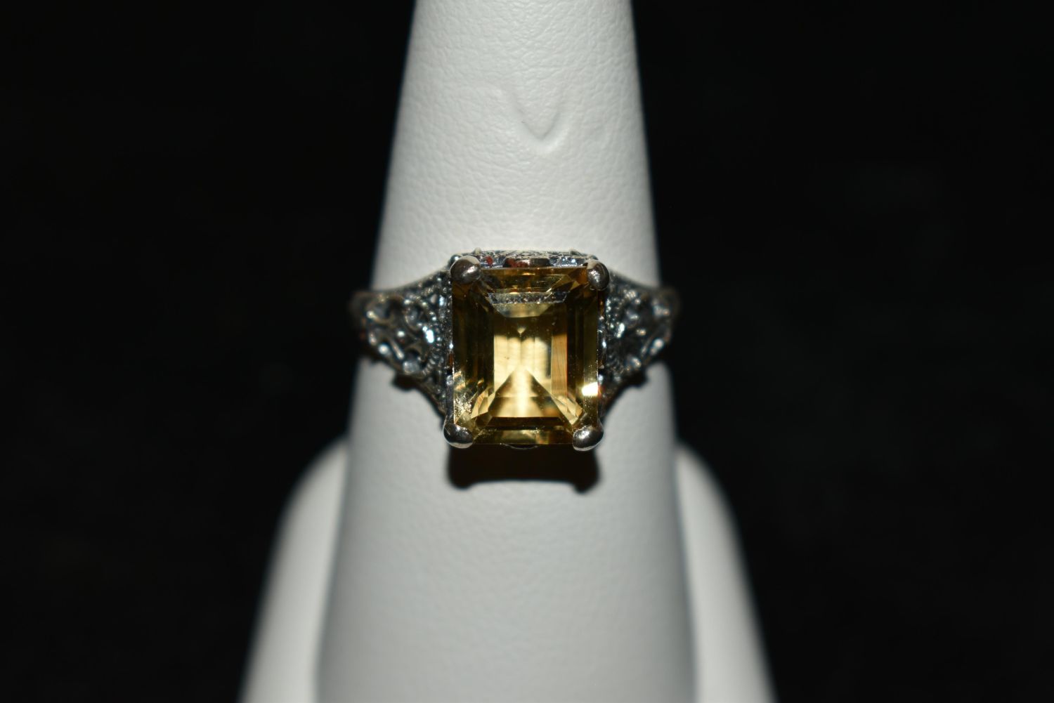 Beautiful 3ct. Citrine .925 filigree sterling silver ring. Size 8.
