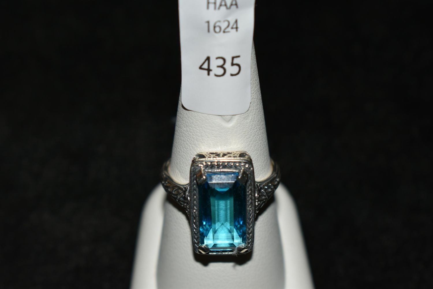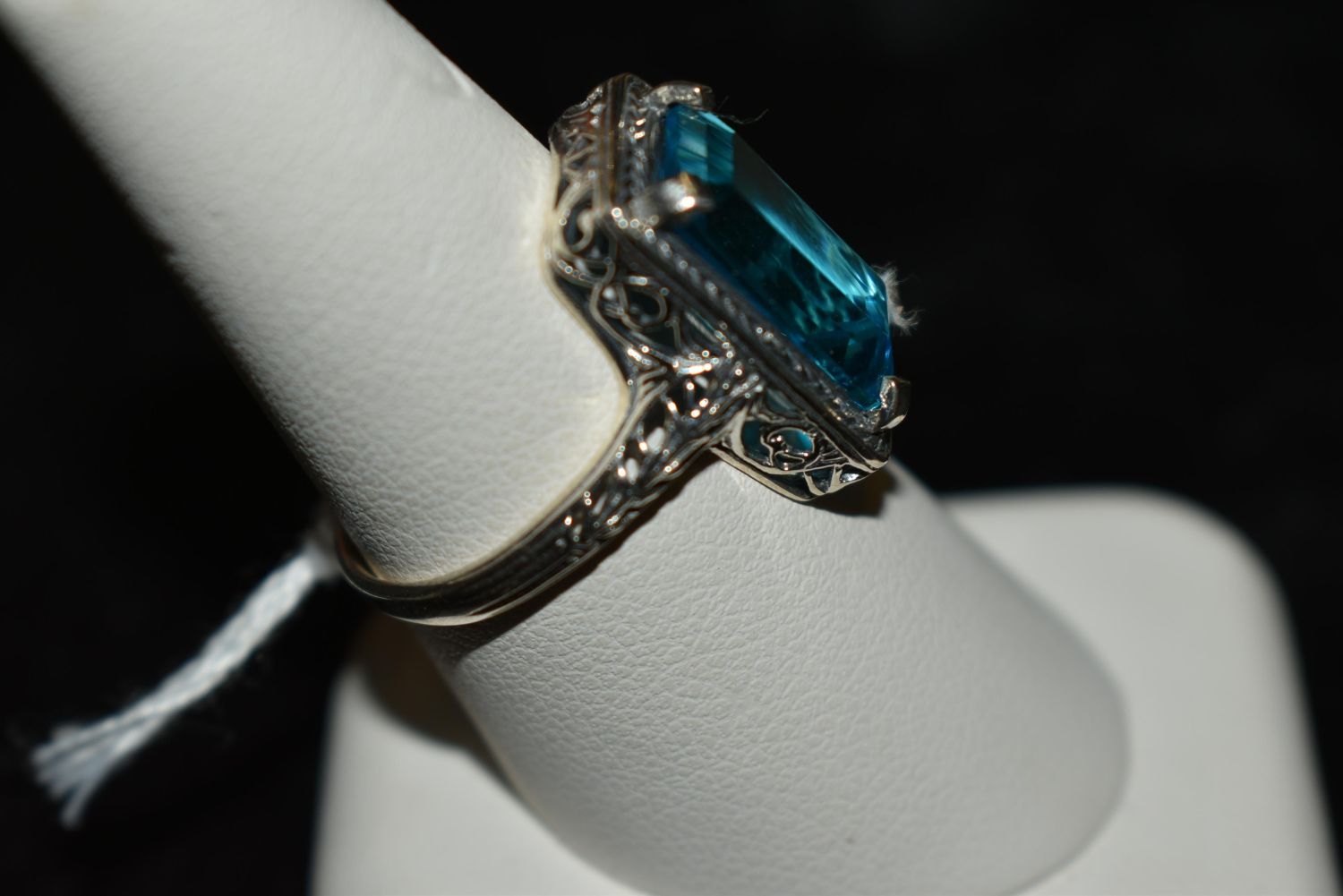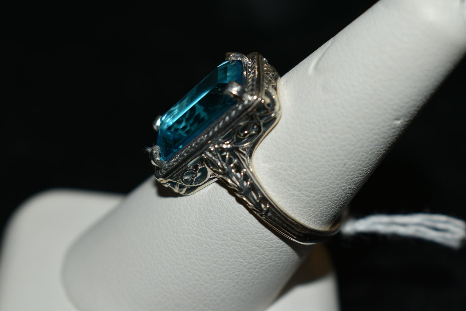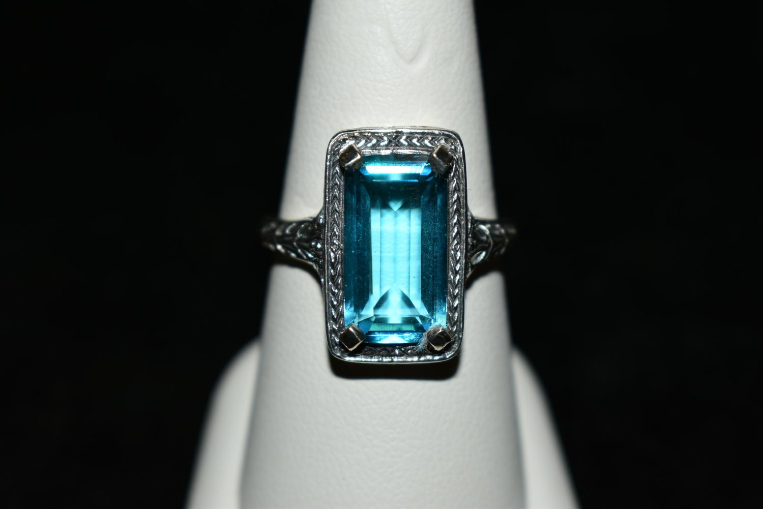 Beautiful Approx. 10ct. aquamarine .925 sterling silver filigree ring. Size 8 1/2. Lab created.