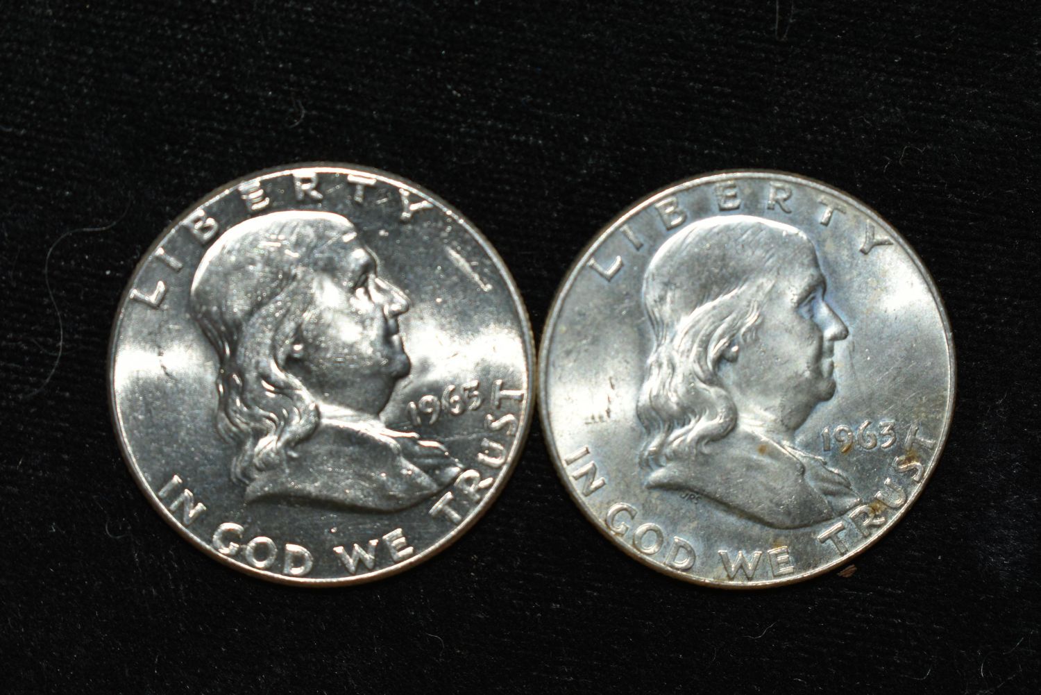 Two uncirculated Franklin half dollars. 1963 and 1963