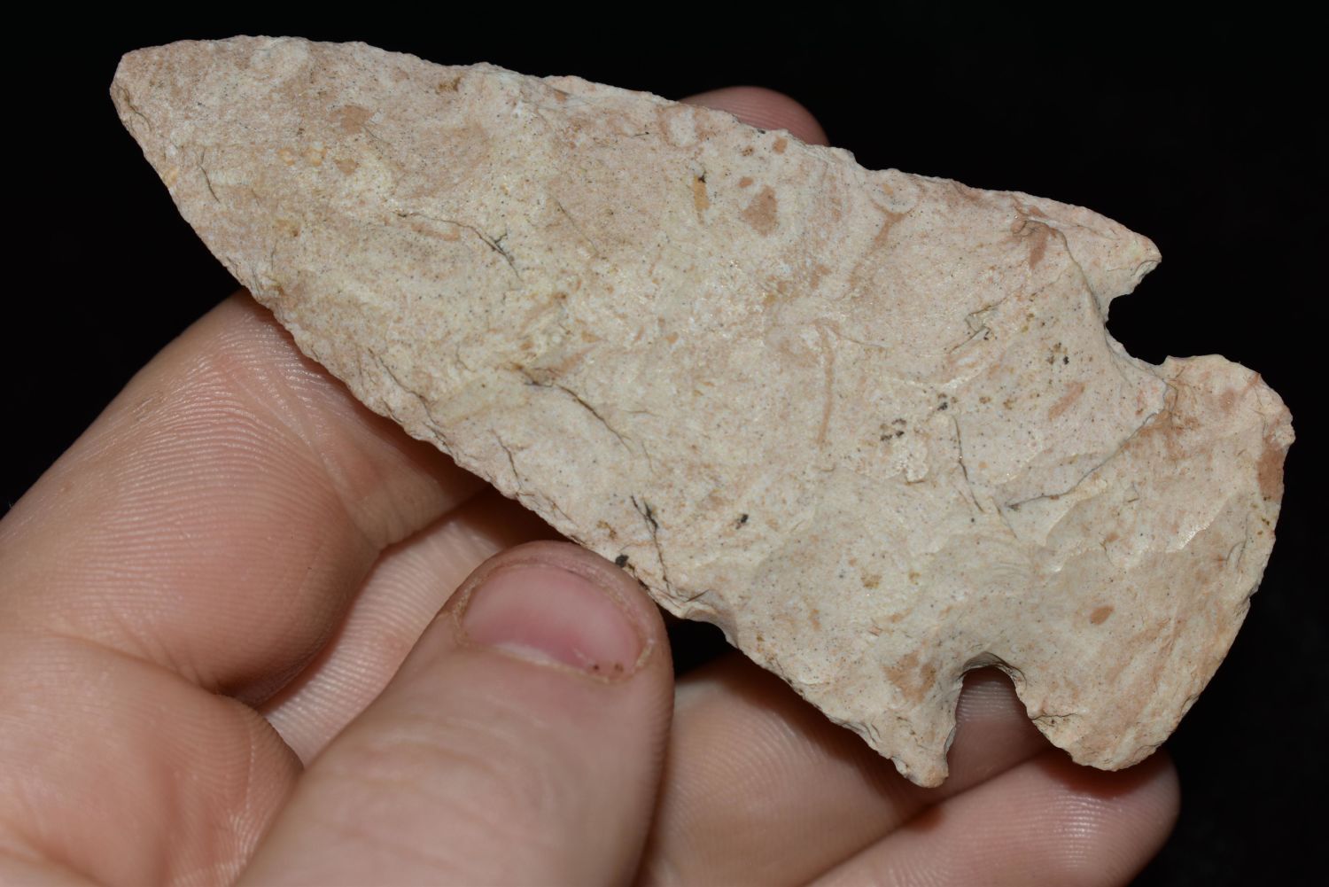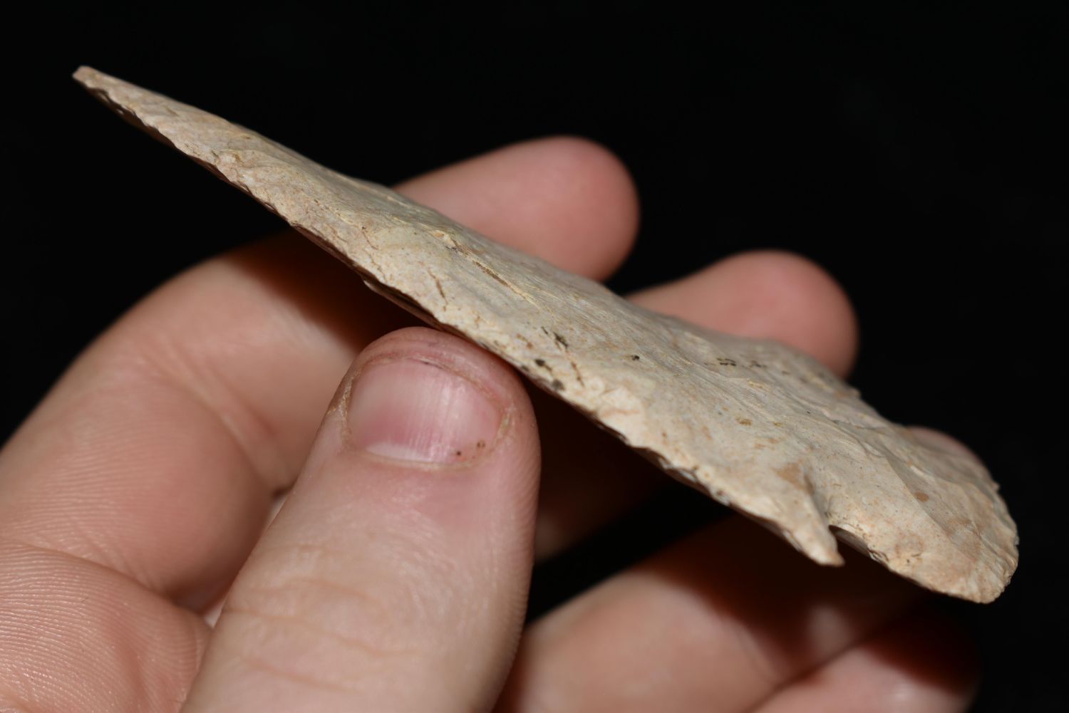 3 3/8" Very Thin, Well Made Rice Lobbed Found by Dan Simmons in Lincoln Co., Missouri in the 90’s Authentic Native American Artifact