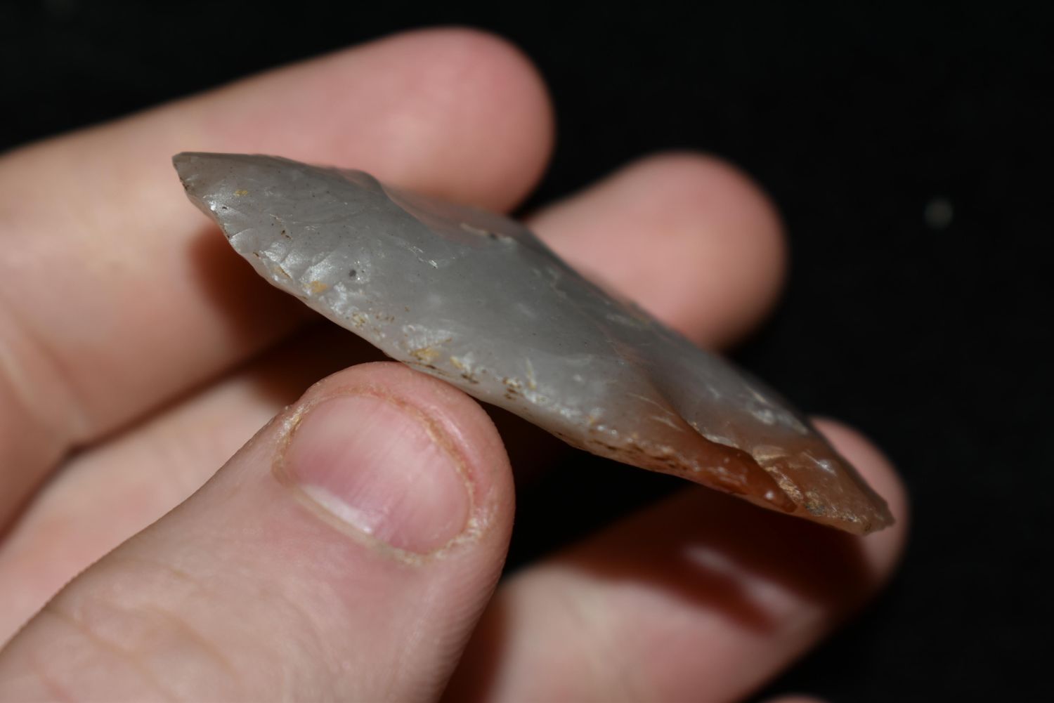 2" Novaculite Rice Lobbed Point found in Yell Co., Arkansas Authentic Native American Artifact