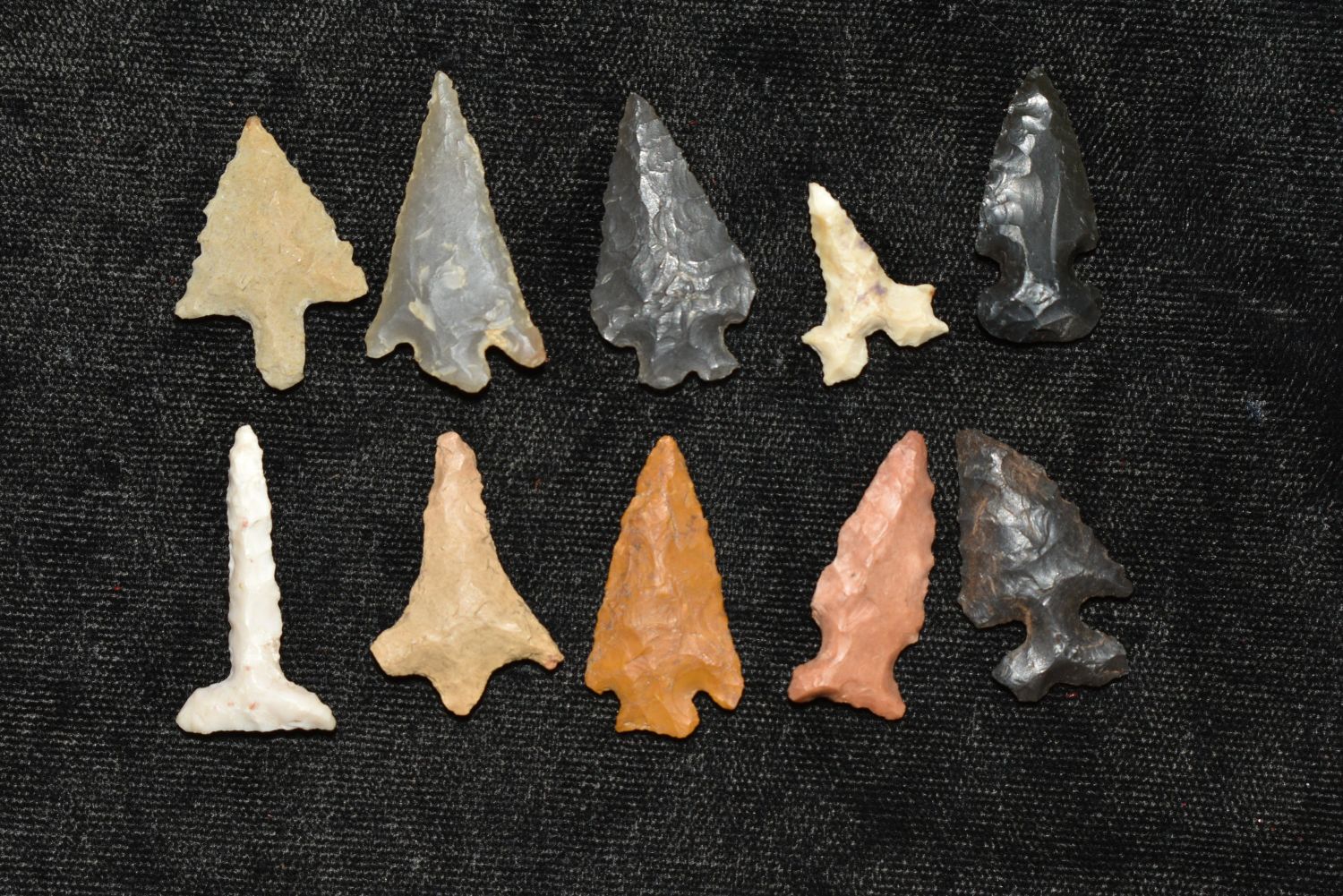 Lot of 10 Mixed Birdpoints found in Arkansas Authentic Native American Artifact