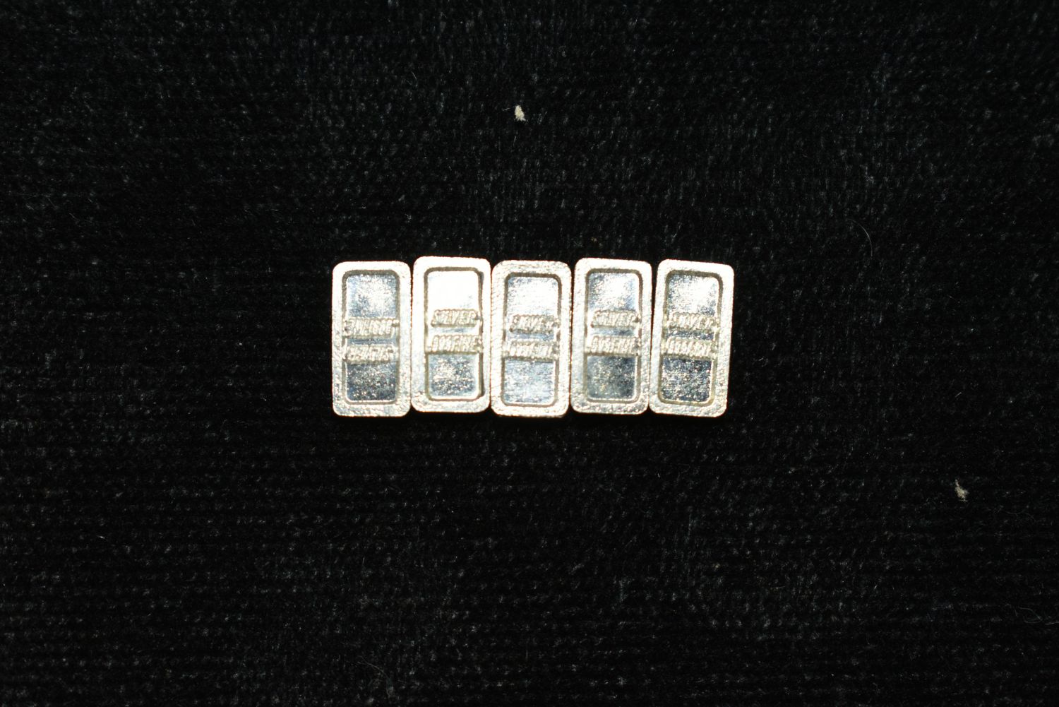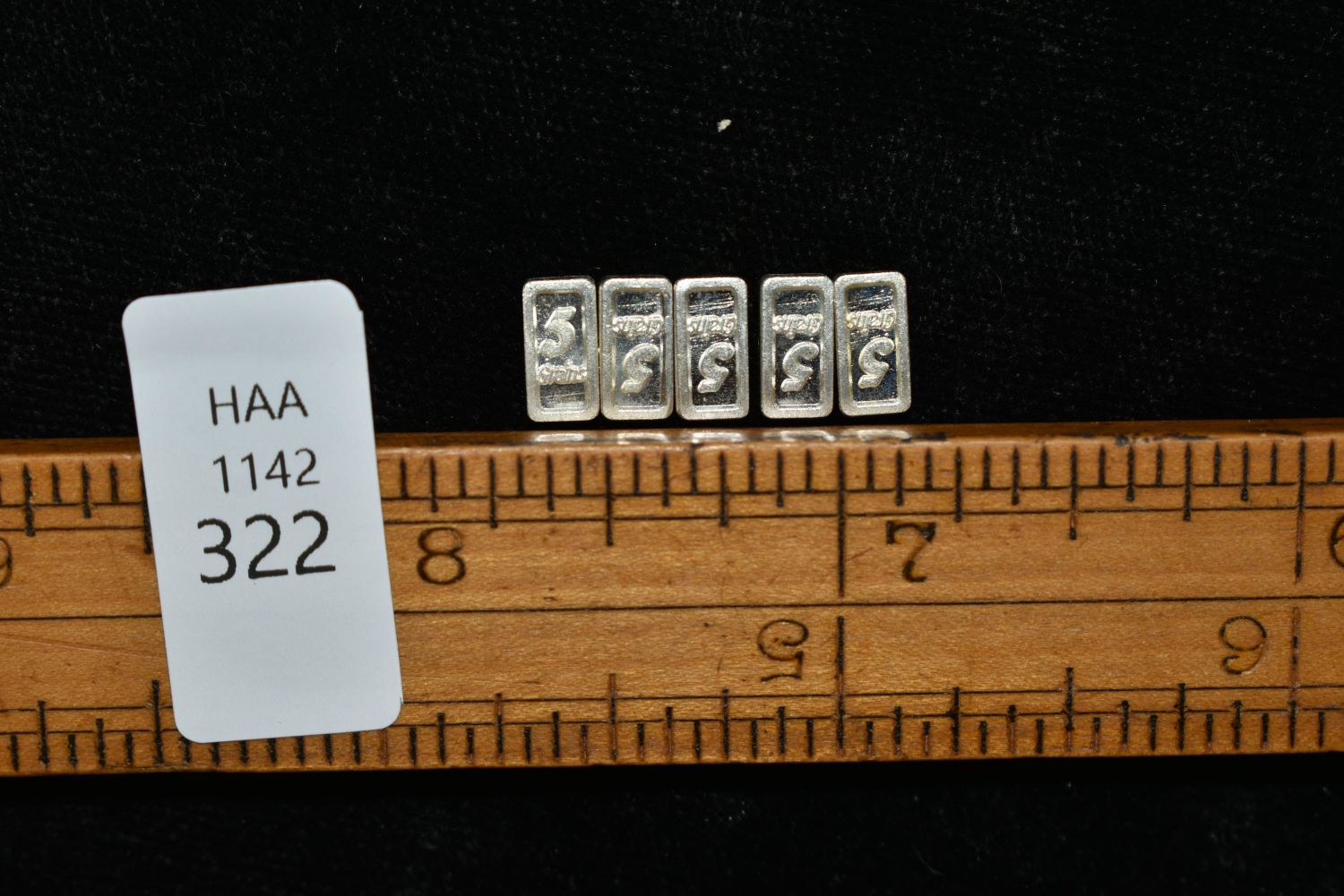 LOT OF 5 MINI SILVER BARS, 5 GRAINS EACH, .999 PURE SILVER