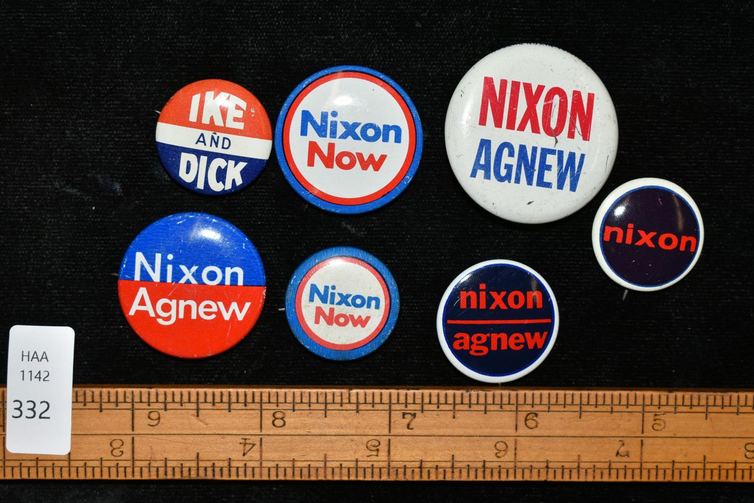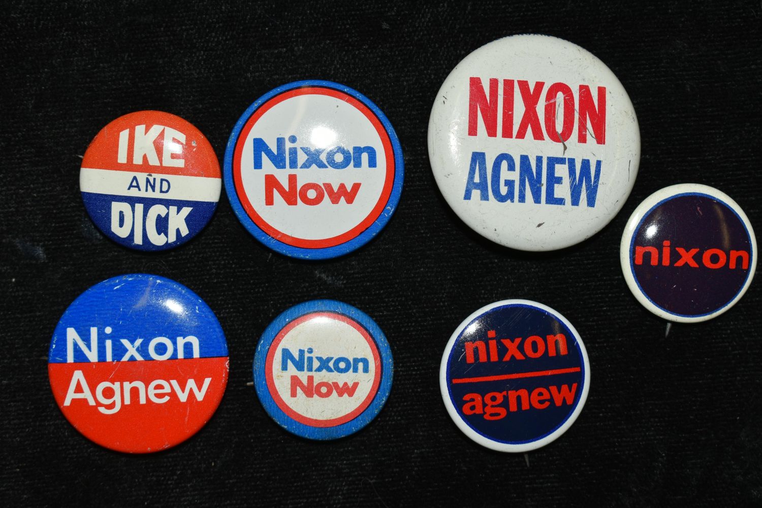 LOT OF 7 EARLY POLITICAL CAMPAIGN BUTTONS, NIXON, IKE, EISENHOWER, AGNEW, DICK
