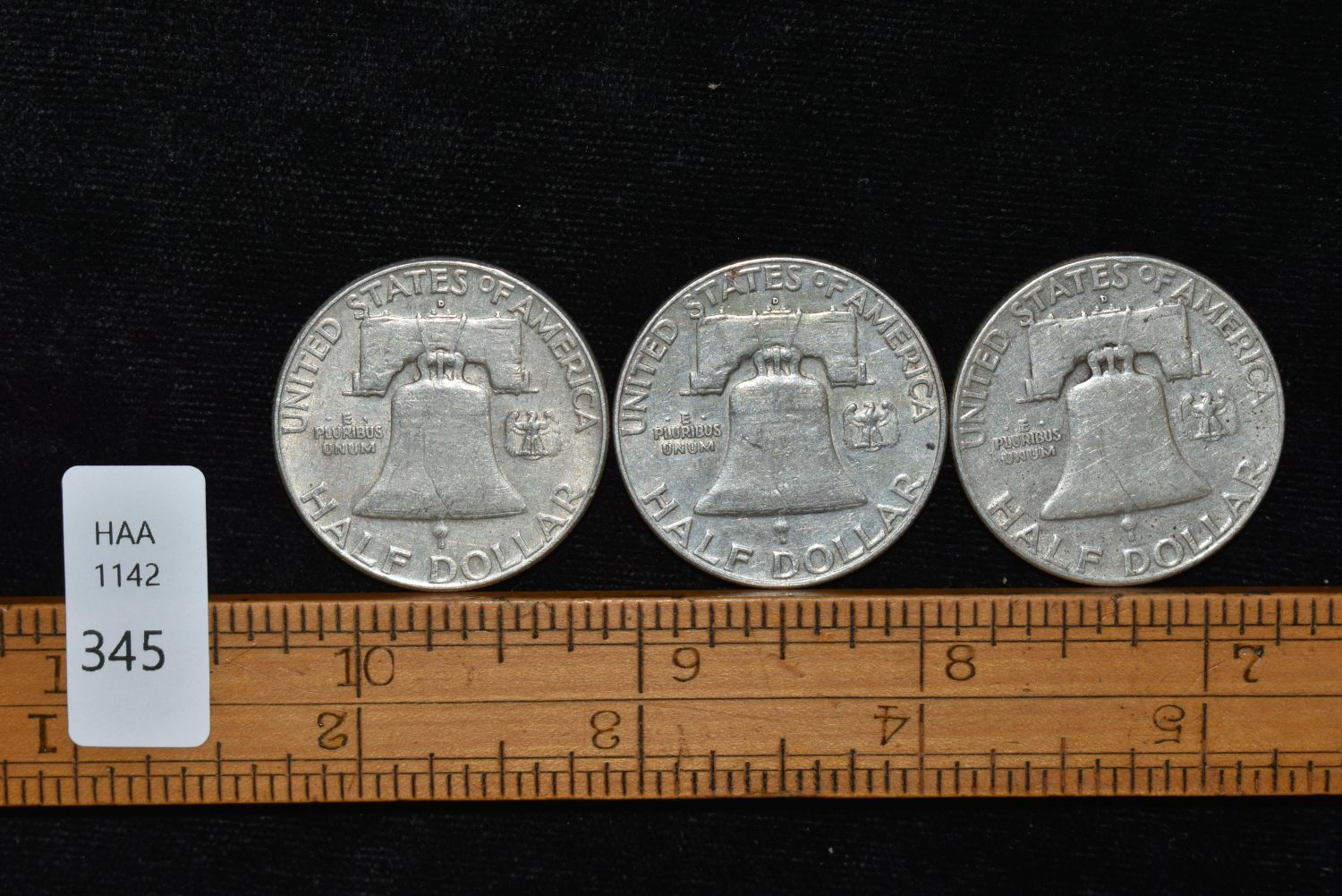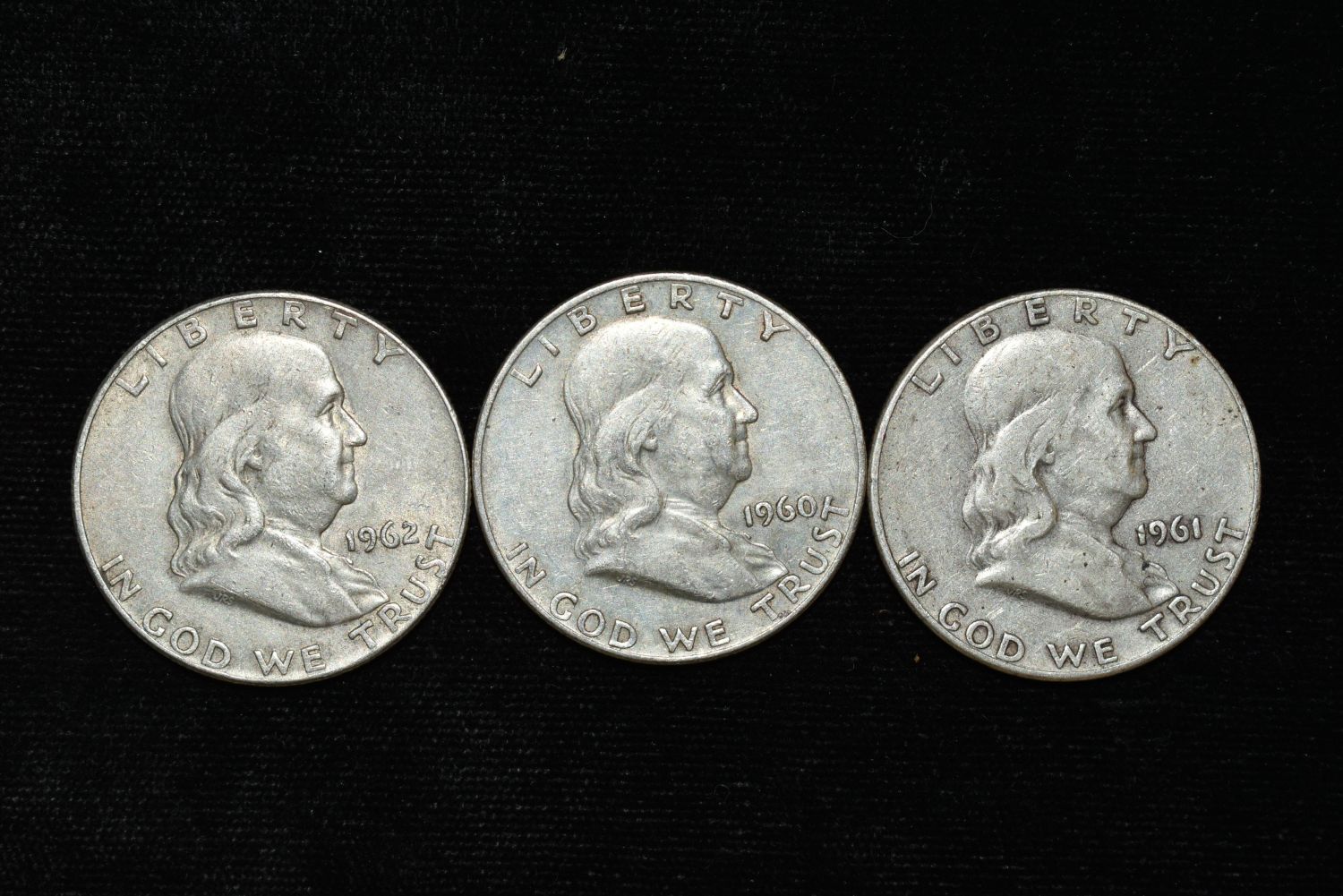 LOT OF 3 FRANKLIN SILVER HALF DOLLARS, 1960-D, 1961-D,