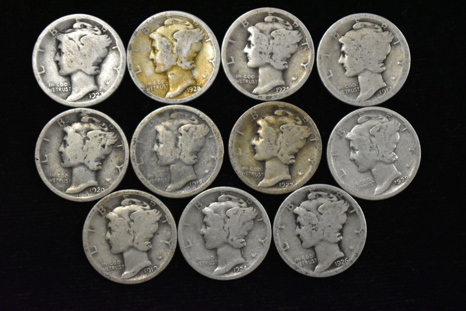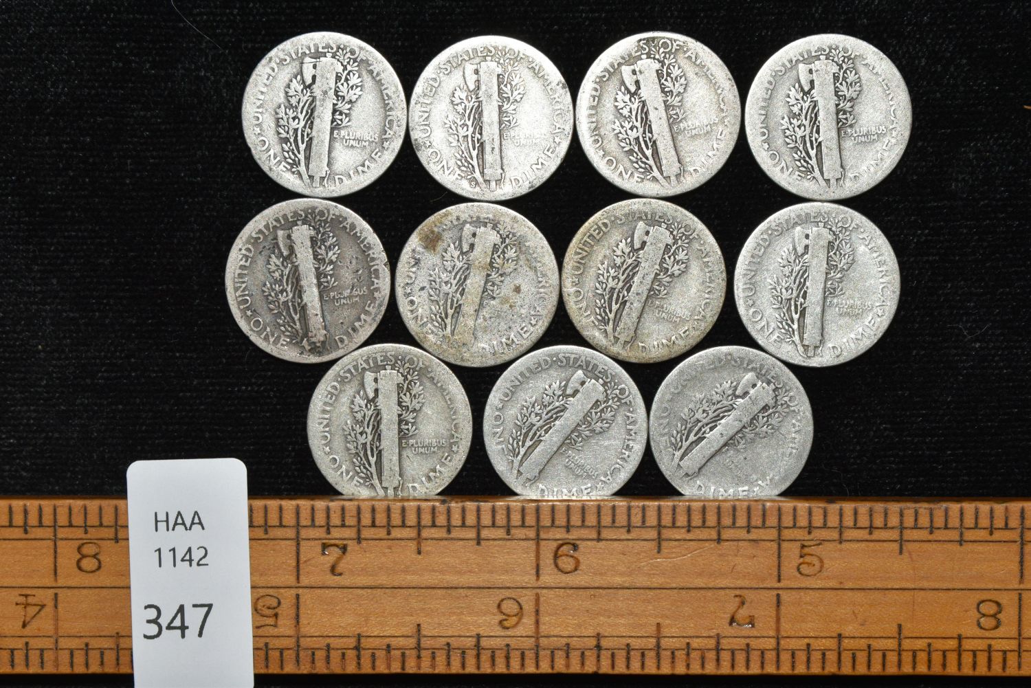 LOT OF 11 SILVER MERCURY DIMES FROM TEENS & TWENTIES