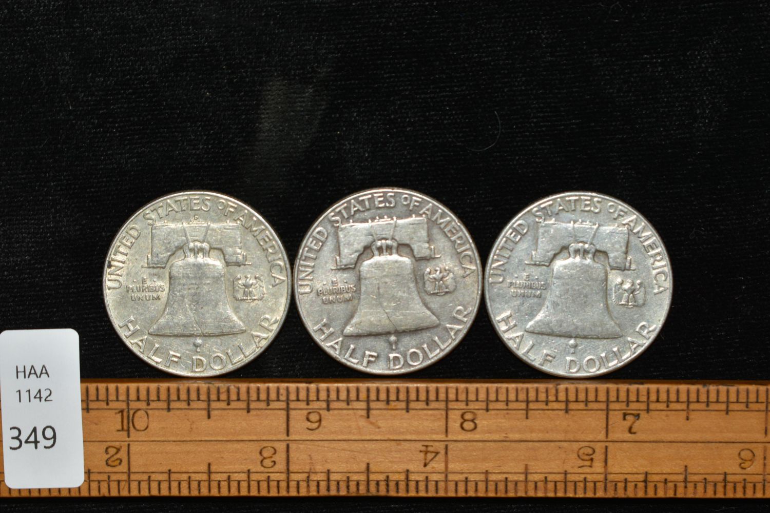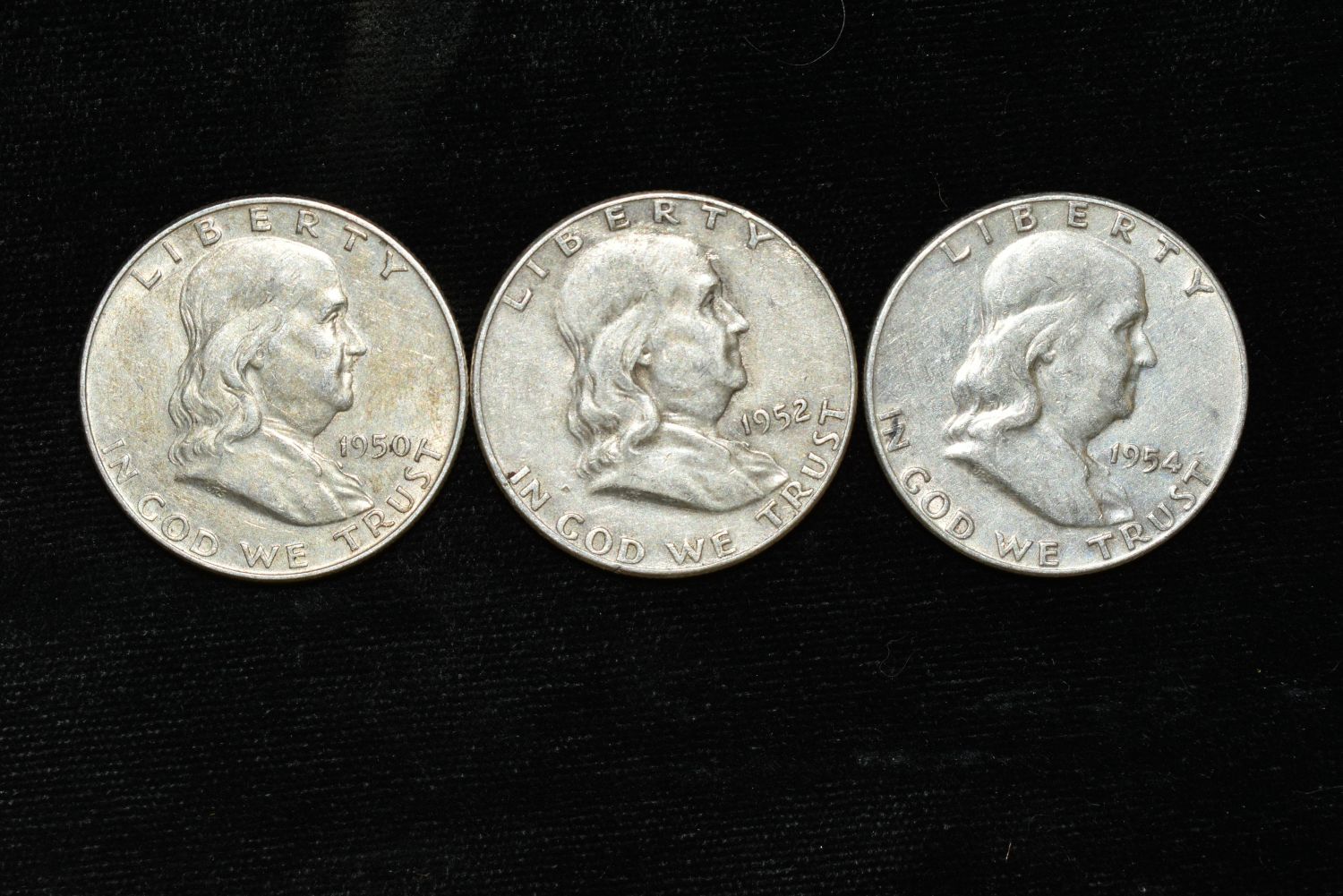 LOT OF 3 FRANKLIN SILVER HALF DOLLARS, 1950-D, 1952, 1954