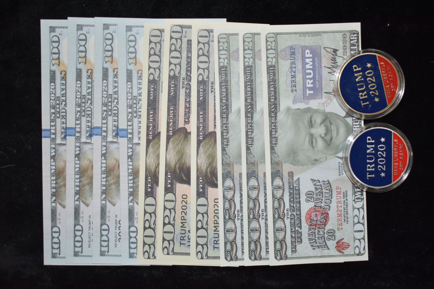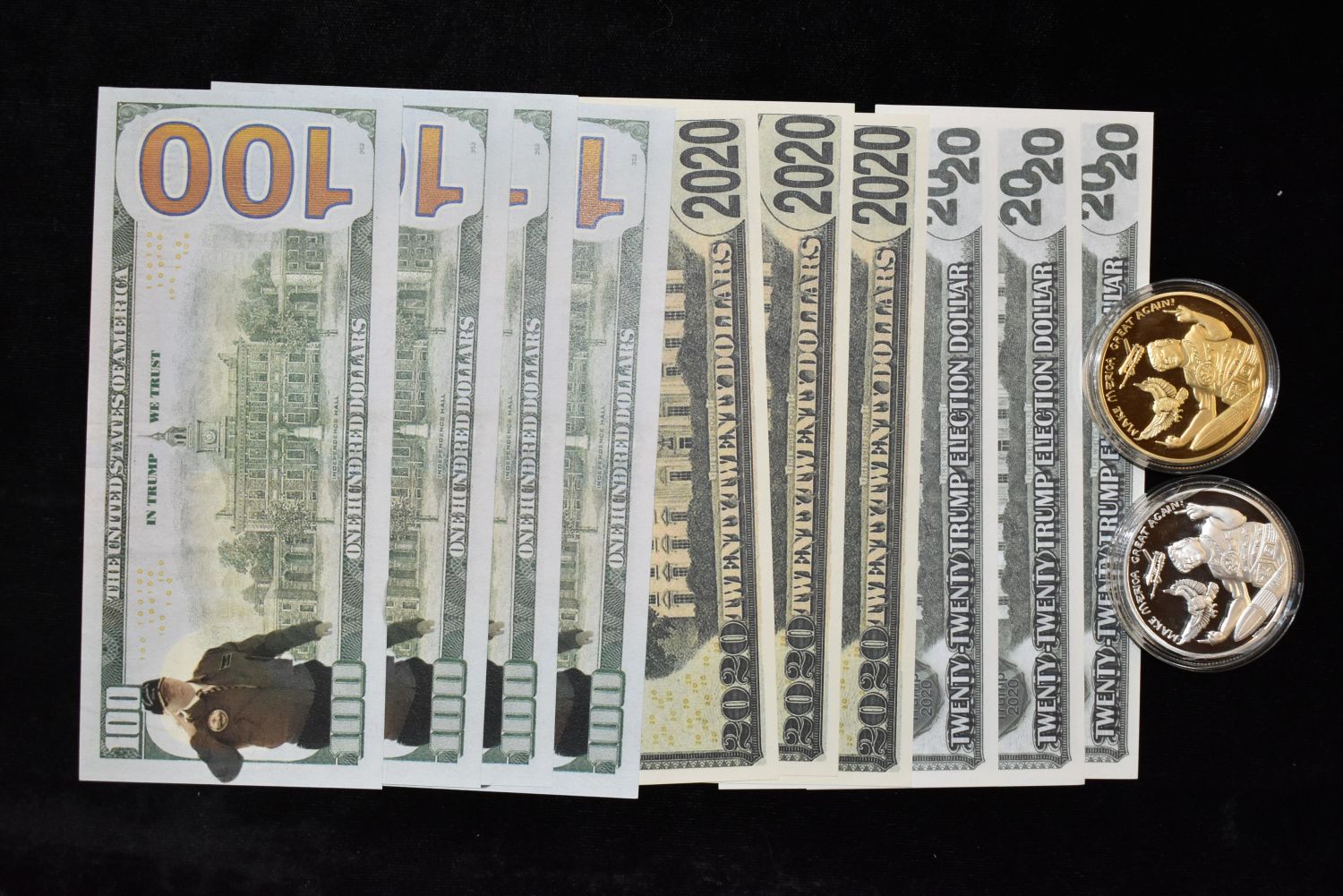 10 TRUMP BILLS AND 2 DONALD TRUMP COINS