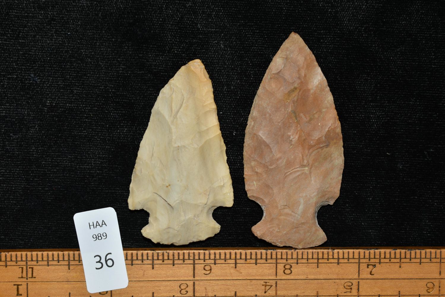 Lot of 2 Snyders found in Arkansas, Largest measures 2 5/8" Authentic Native American Arrowhead