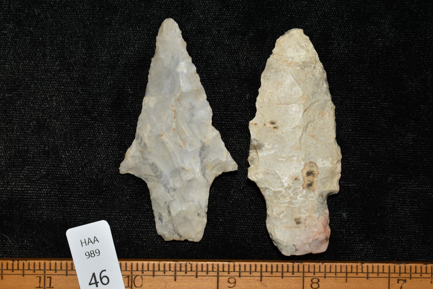 Lot of 2 Sqaure Stemmed Point found in Stone Co., Arkansas, Largest measures 2 5/8" Authentic Native American Arrowhead