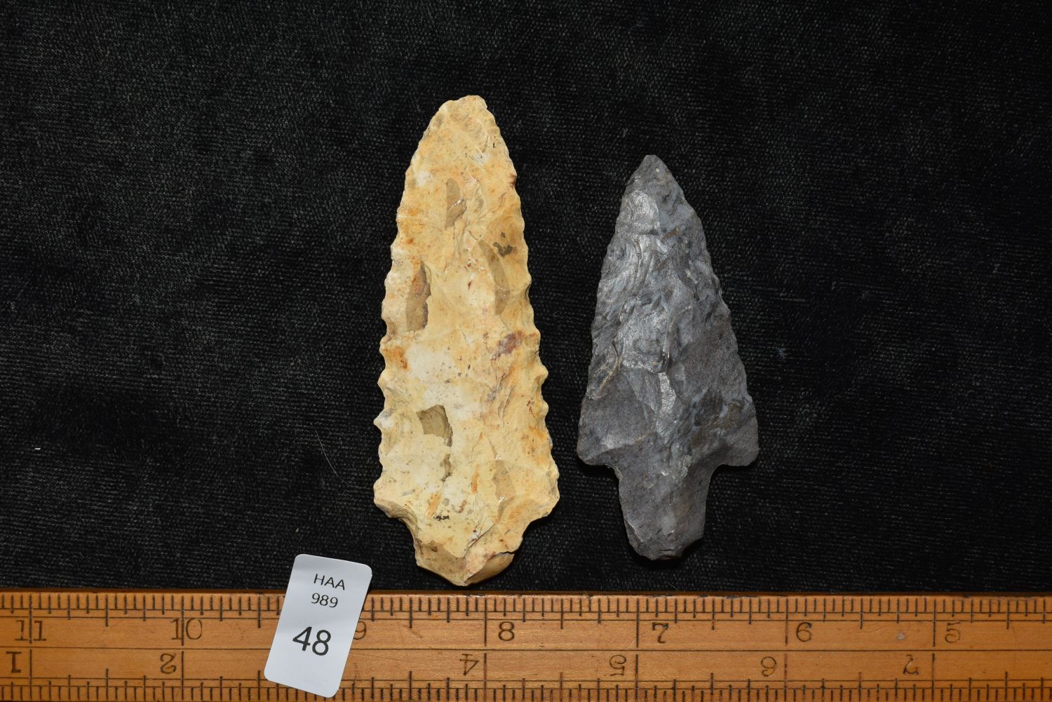 Lot of 2 Adena’s found in Arkansas, Largest measures 2 3/4" Authentic Native American Arrowhead