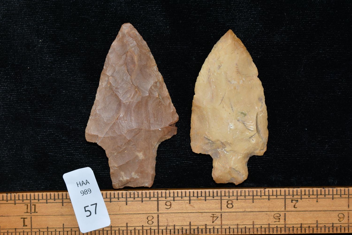 Lot of 2 Woodland Points found in Arkansas, Largest measures 2 5/8" Authentic Native American Arrowhead