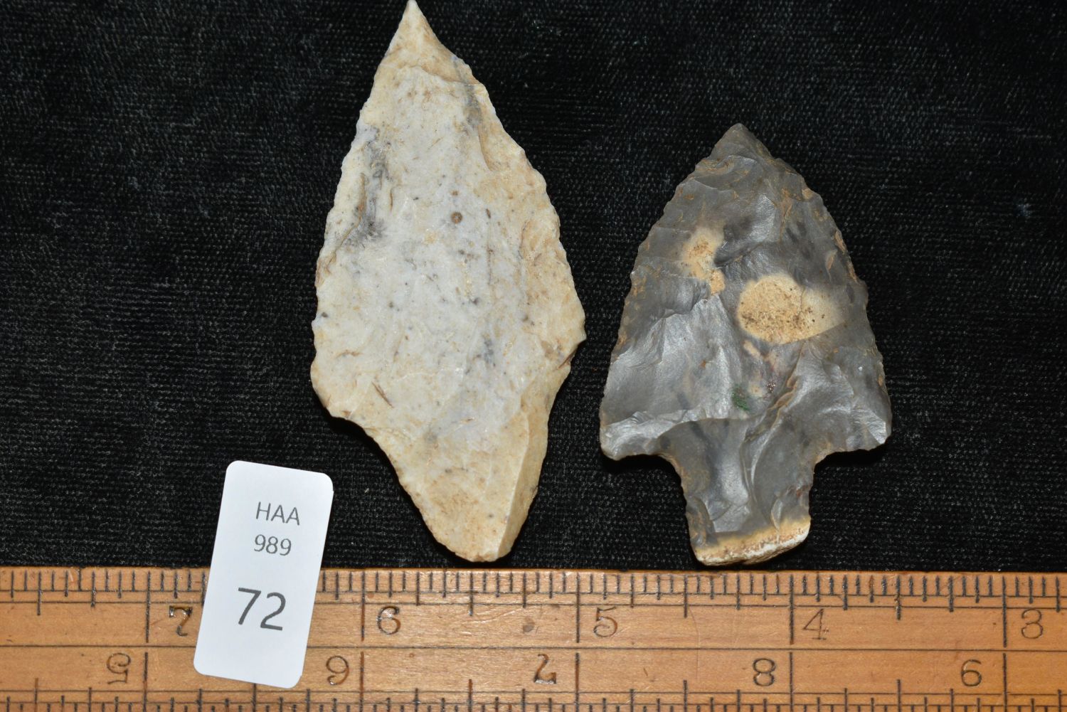 Lot of 2 Gary Points found in Arkansas, Largest measures 2 3/4" Authentic Native American Arrowhead