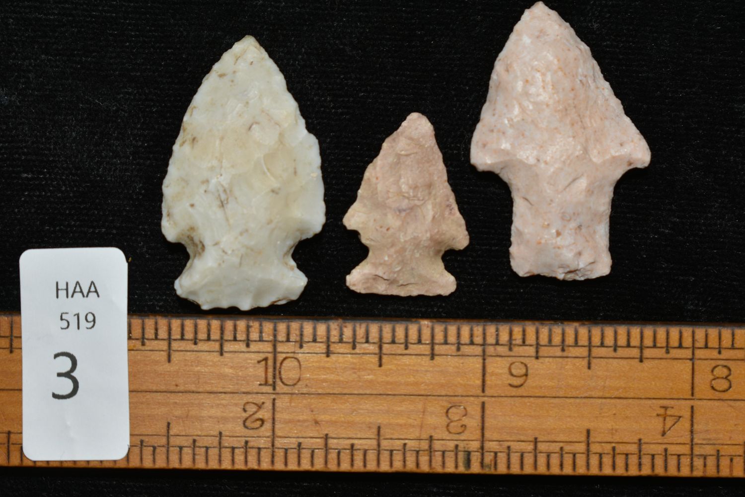 Lot of 3 Woodland Points found in Arkansas, Largest measures 1 3/8" Authentic Native American Artifact