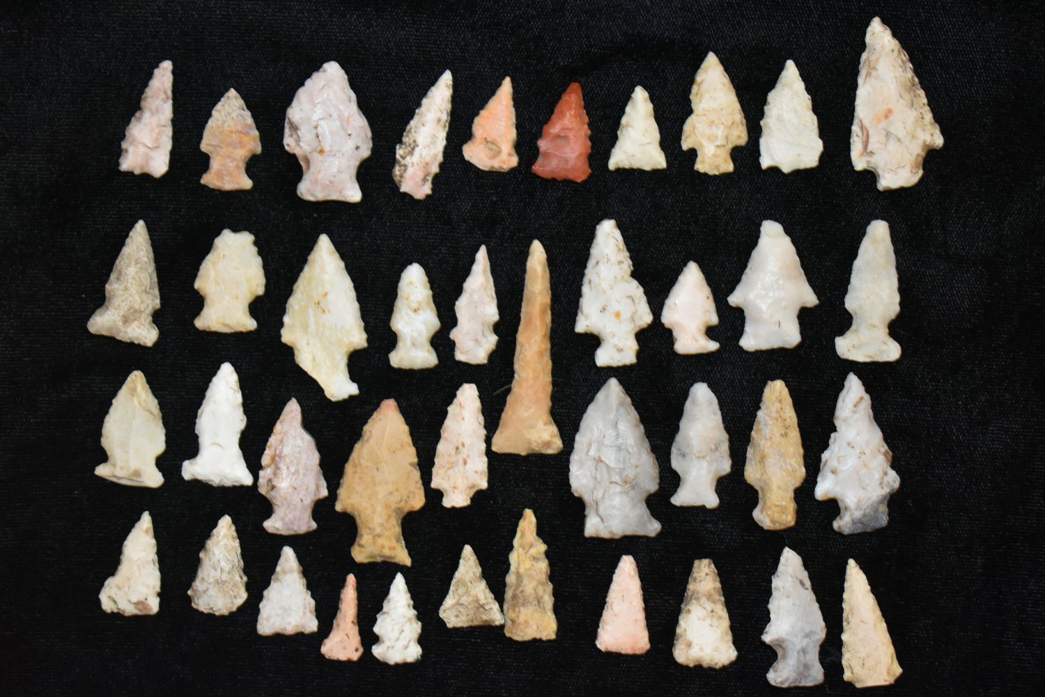 Lot of 40 Birdpoints found by John Steinbaker in Pike Co., Illinois Authentic Native American Artifact
