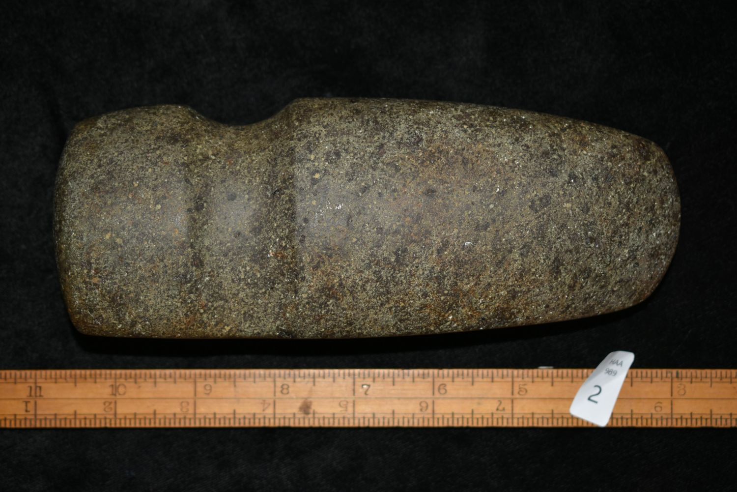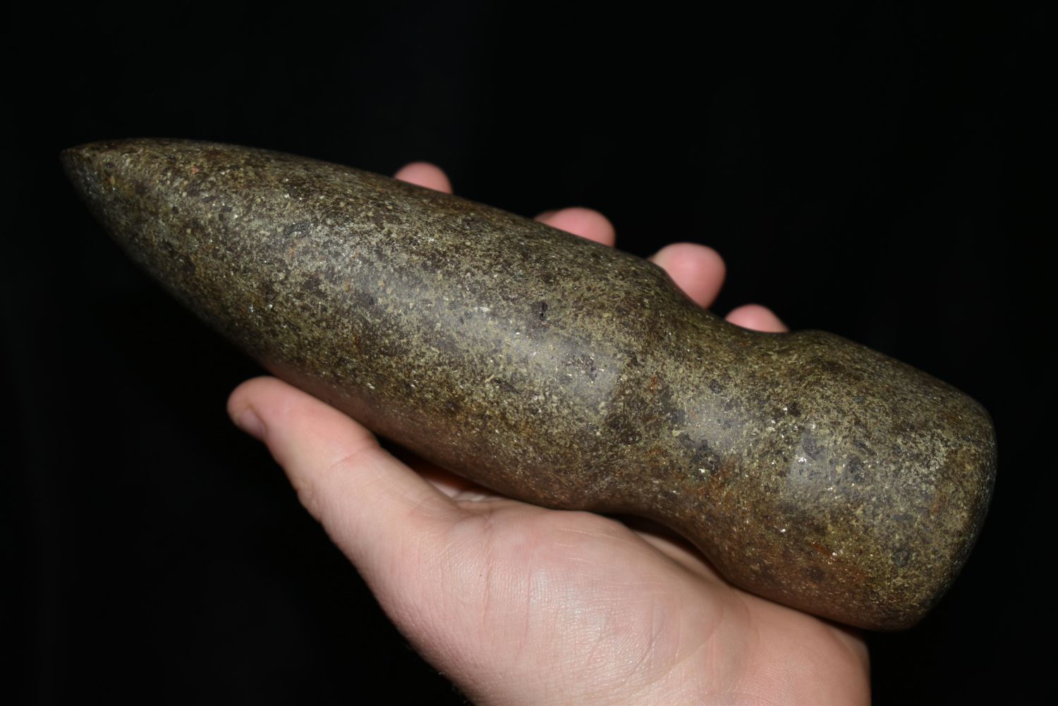7 5/8" 3/4 Groove Axe found in SE Missouri, Very Fine lines and form with a nice finish. Authentic Native American Artifact