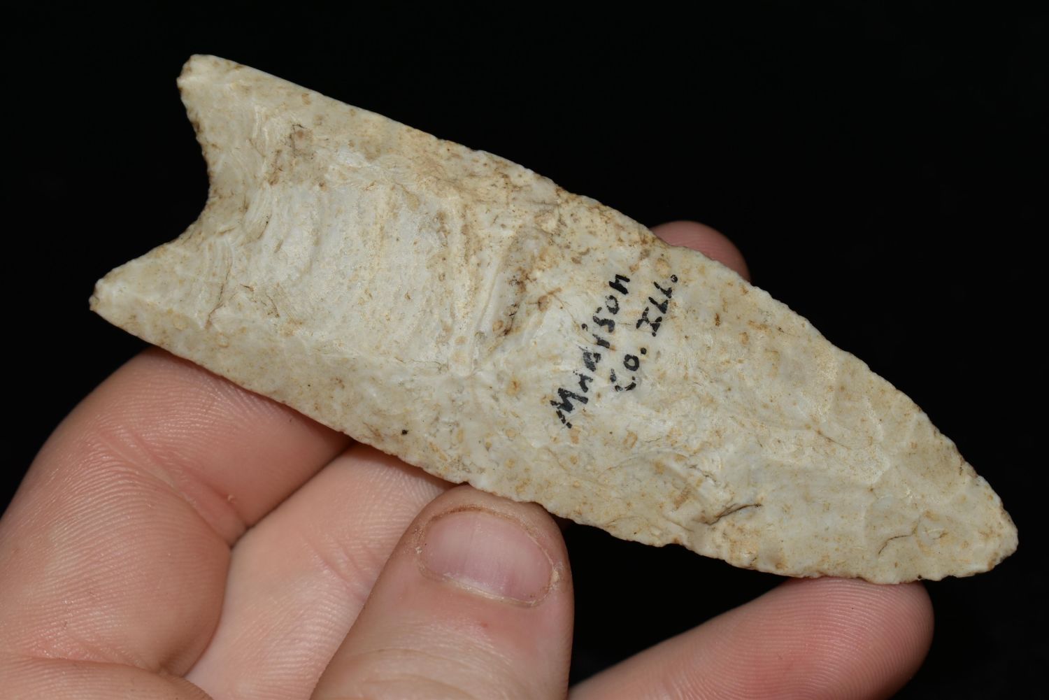 3 5/8" Extremely Fine Fluted Clovis found in Madison Co., Illinois, Great Flutes and Flaking Authentic Native American Artifact