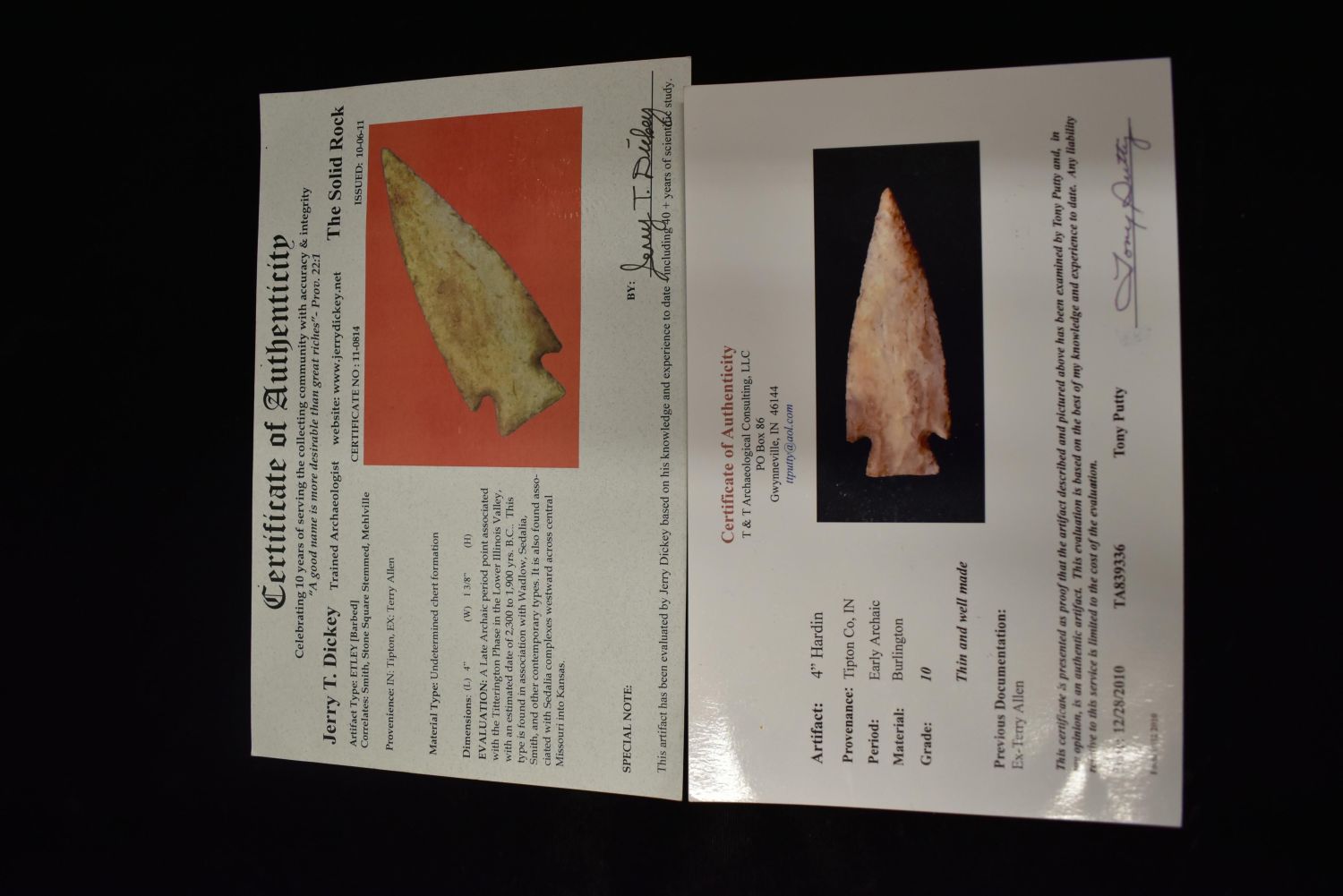 4" Barbed Etley found in Tipton Indiana Dickey/Putty C.O.A Authentic Native American Artifact