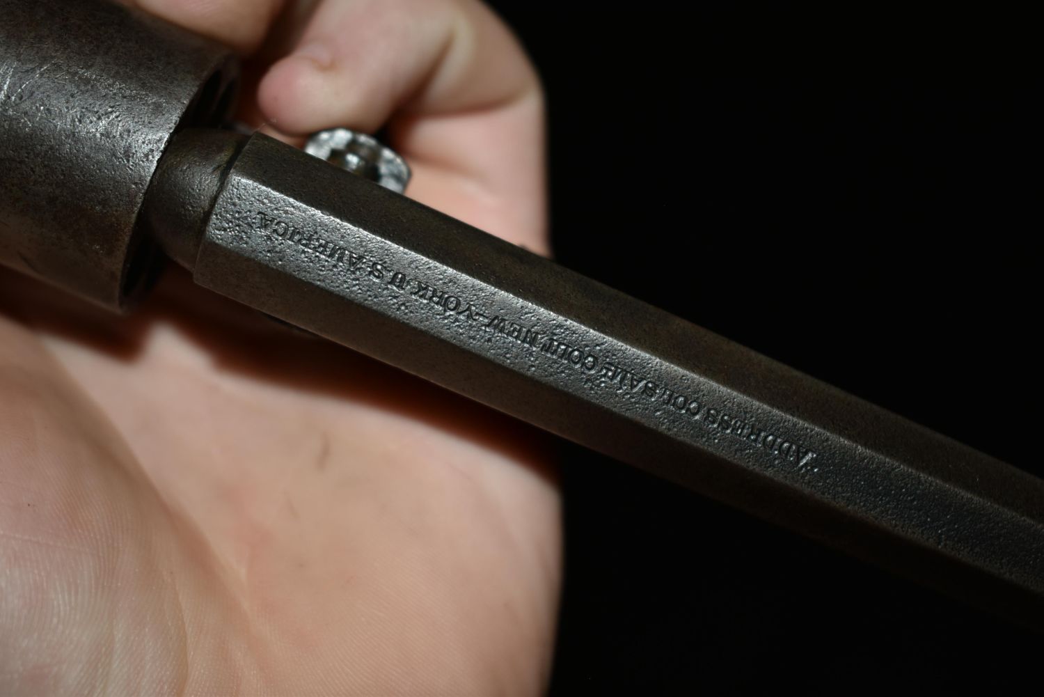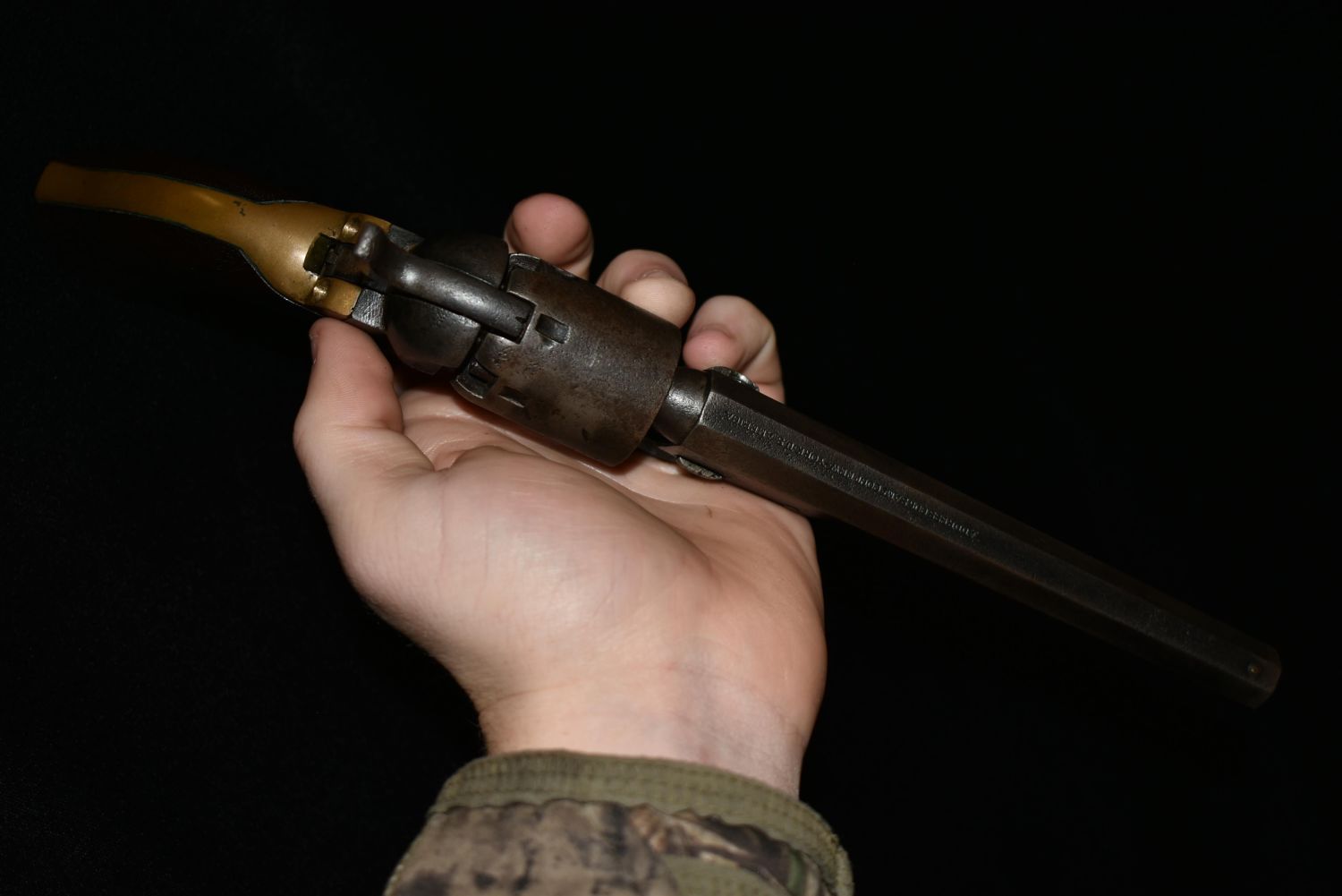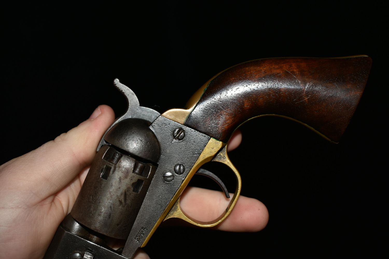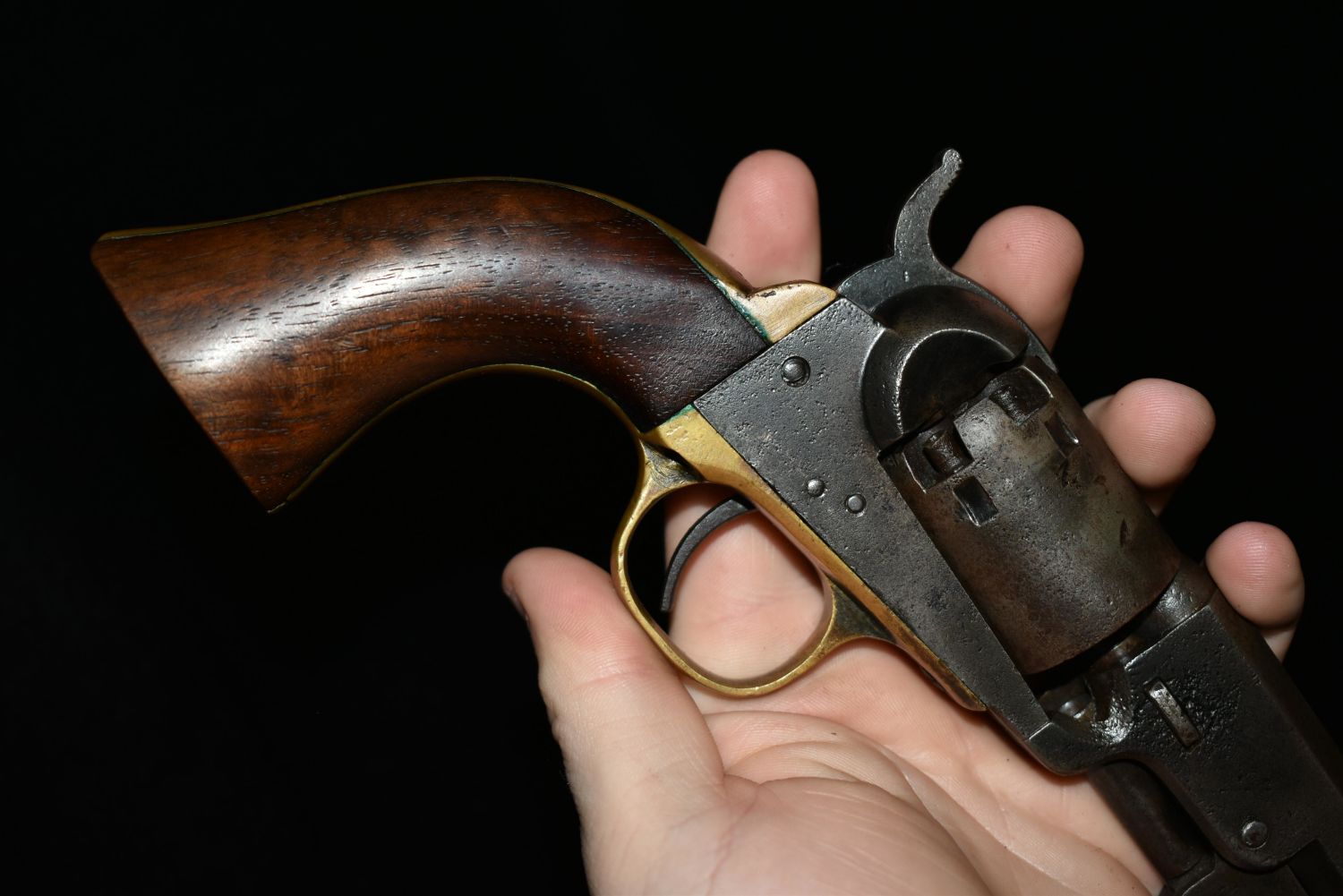 Cased Civil War 1849 Pocket Colt Revolver. SN dates to 1863. Included a wood case, powder flask, bullet mold, cap tin and bullets. 31 gauge. In good as found condition
