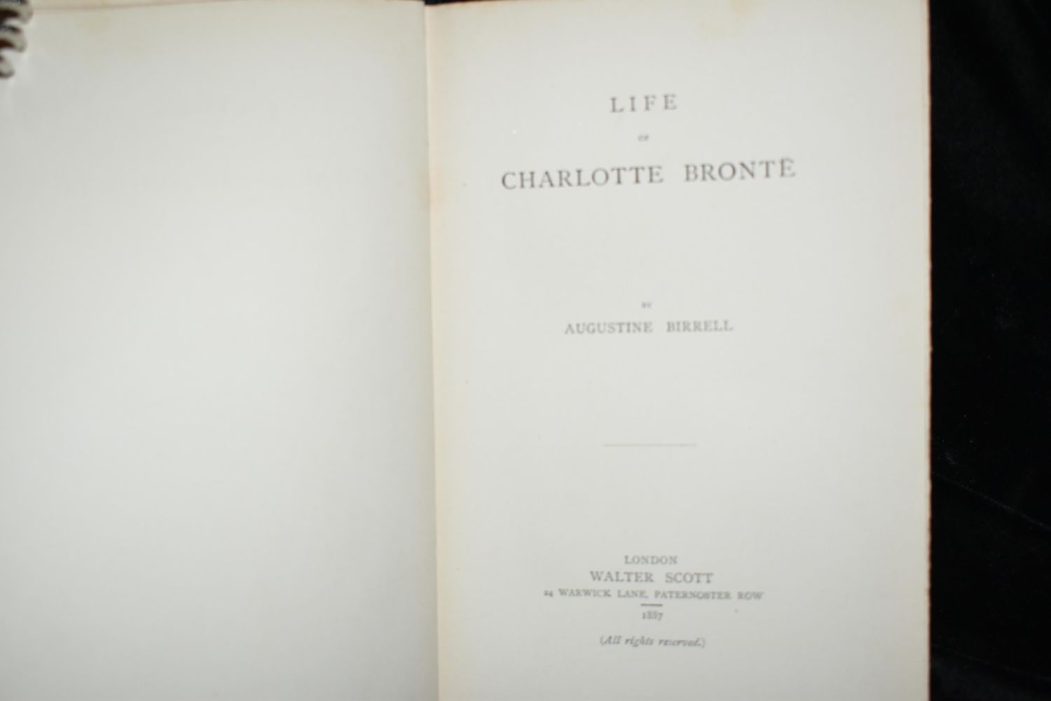 1887 LIFE OF CHARLOTTE BRONTE by Augustine Birrell. Published by London: Walter Scott. Charlotte Bronte is perhaps one of the most well known English novelists of the 19th-century, let alone being the most popular female author of English literature. Her works, such as Jane Eyre, propelled her fame and made a lasting impact on English literature. Hardback with Publishers Blue cloth and gold gilt. Very Good Shape for its age. It has the offset page binding where the pages arnt flush with one another. Some Page foxing at the front and back of the book. Overall very good. 186 pgs. 8 5/8" by 5 7/8"
